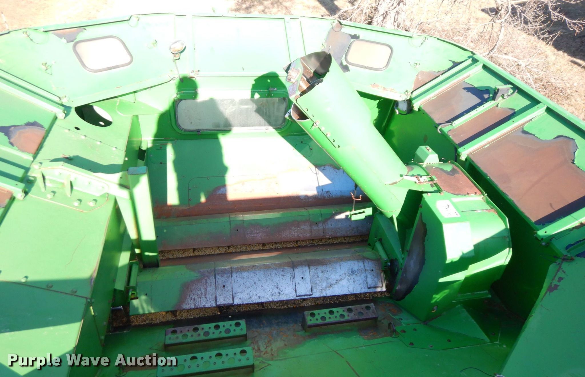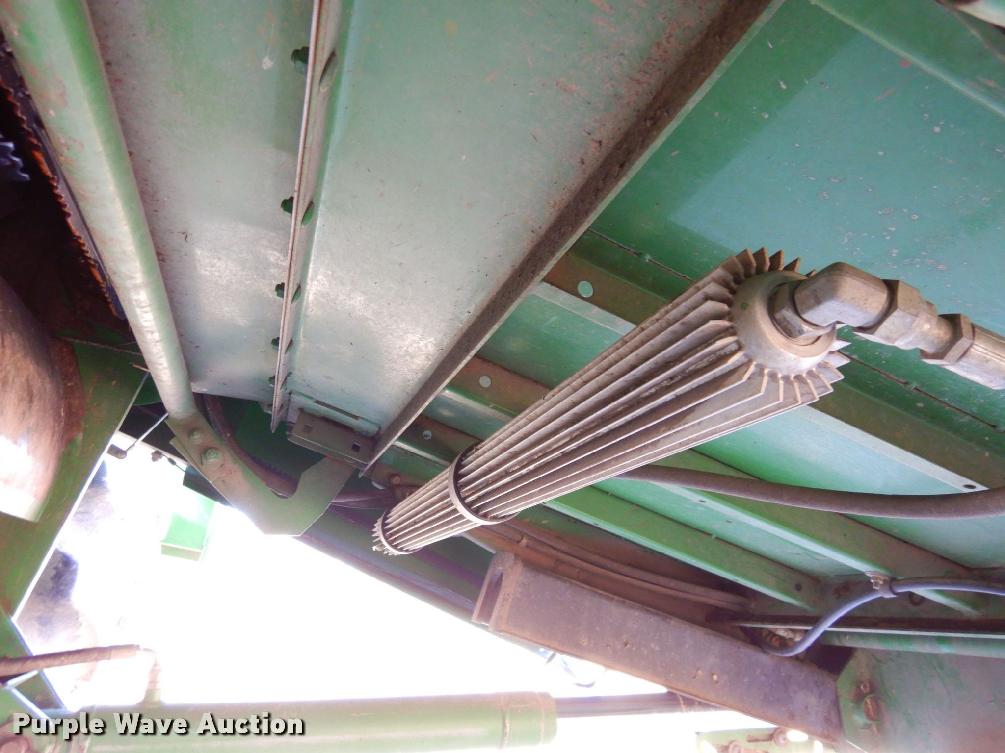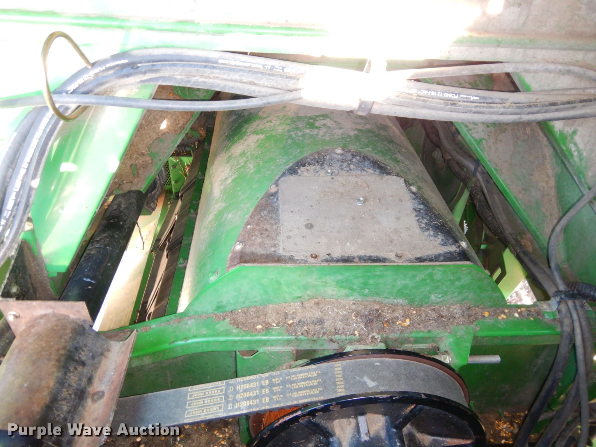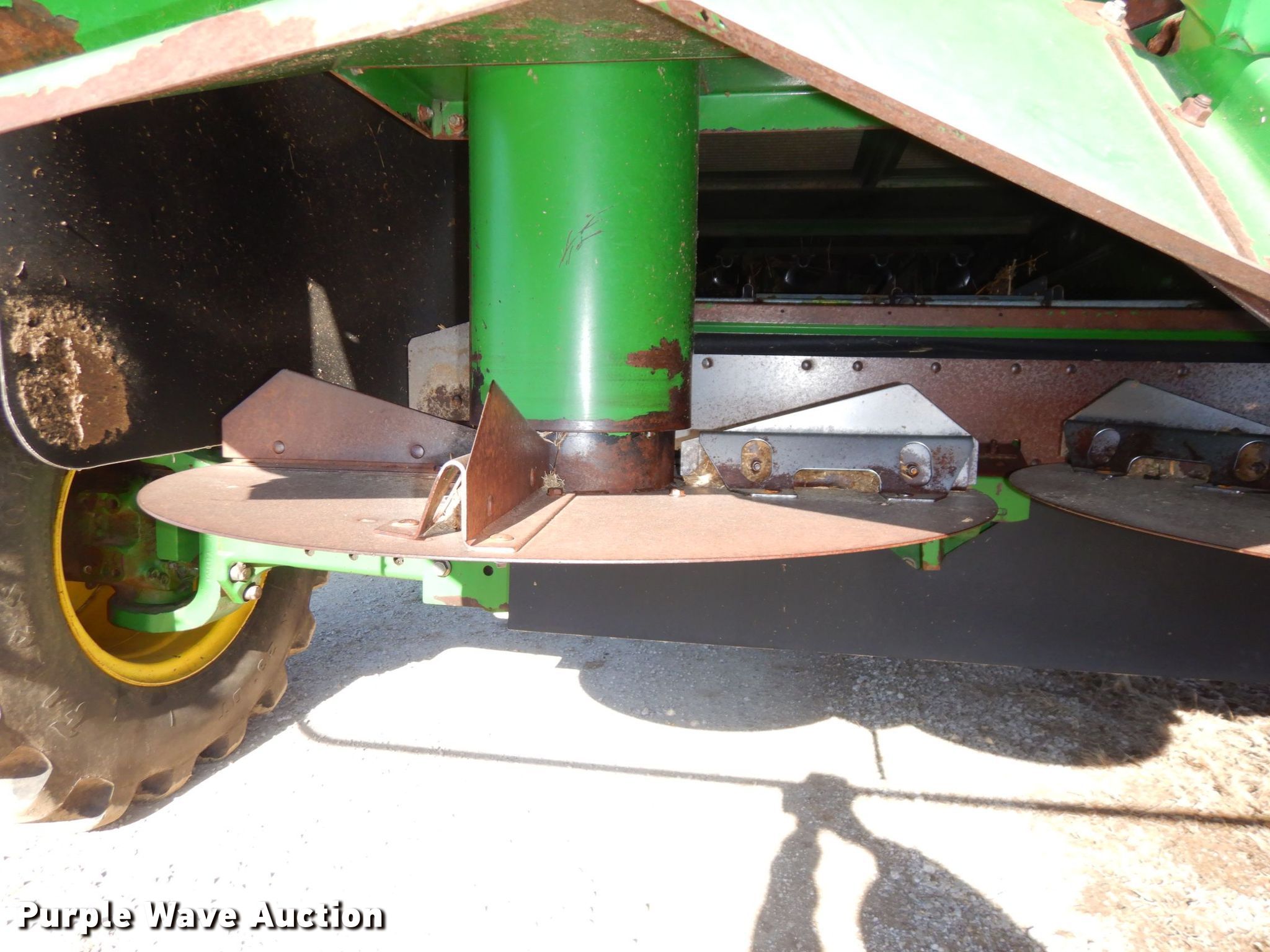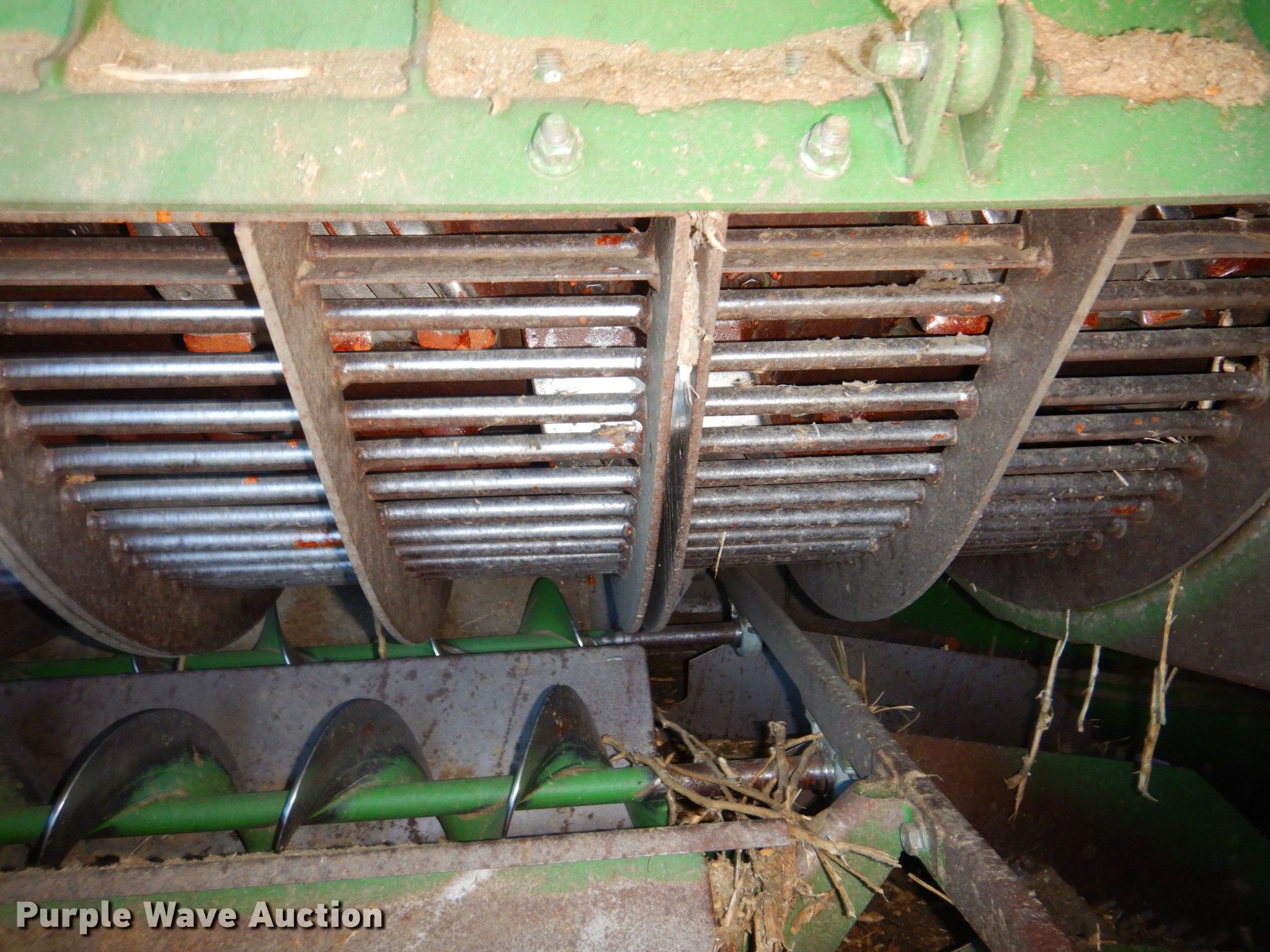 2008 John Deere 9770 STS RWA combine. Engine hours: 2,616 on meter, Separator hours: 1,447 on meter, Serial: H09770S727455. Engine John Deere, Cylinders: 6, Fuel type: Diesel. Transmission Hydrostatic. Interior AC, Heat. Features Operator manual, Single point header coupler, Feederhouse: Reverser , Variable speed, Concaves: Round, Rotor speeds: 2, Chaff spreader, Bin: Extensions, Unloading auger length: 22' 6". Tires Front: 1250/45-32, Rear: 54x37.00-25, Brand: Firestone. 5395 NE State Route 18. Adrian, MO 64720