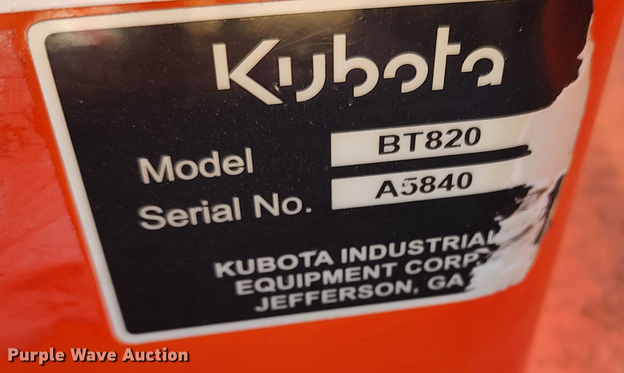 Kubota B26 backhoe. Hours: 2,150 on meter, Serial: 55813. Engine Cylinders: 3, Fuel type: Diesel. Transmission Hydrostatic. Features PTO: 540, Loader Kubota TL500, Controls: Joystick, Bucket Width: 60", Backhoe Kubota BT820, Width: 12". Tires Front: 23x8.50-14, Rear: 12.4-16. 1401 Lakeshore Dr. Yukon, OK 73099