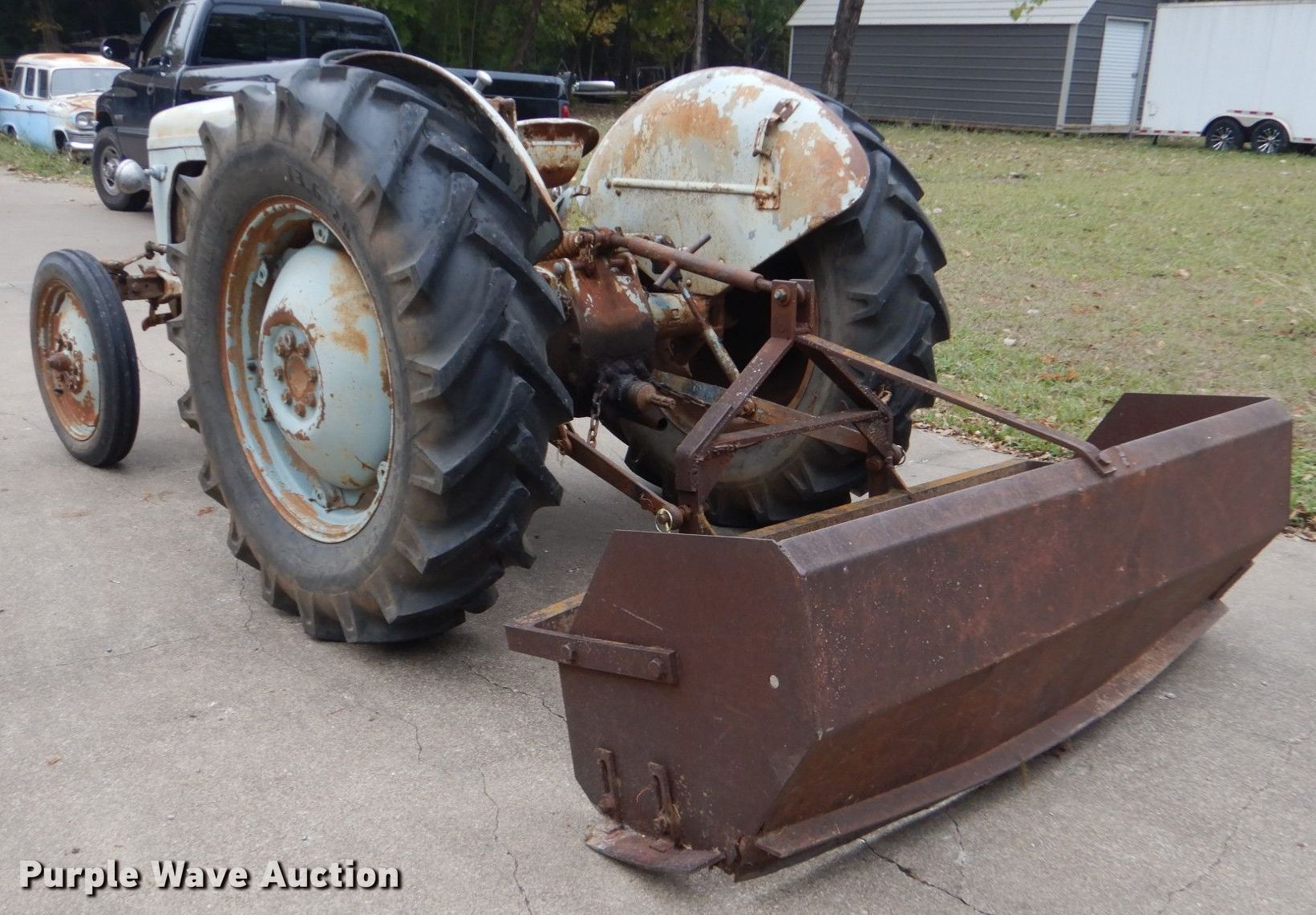 1950 Ferguson TO-20 tractor. Serial: 16191. Engine Continental Z120, Serial: 116714, Cylinders: 4, Fuel type: Gas. Transmission Manual, 4F - 1R. Features PTO: 540, Three point Top link, Towner F155 box blade Width: 66", Serial: 181. Tires Front: 4.00-19, Rear: 13.6x28. 7555 CR990. Princeton, TX 75407