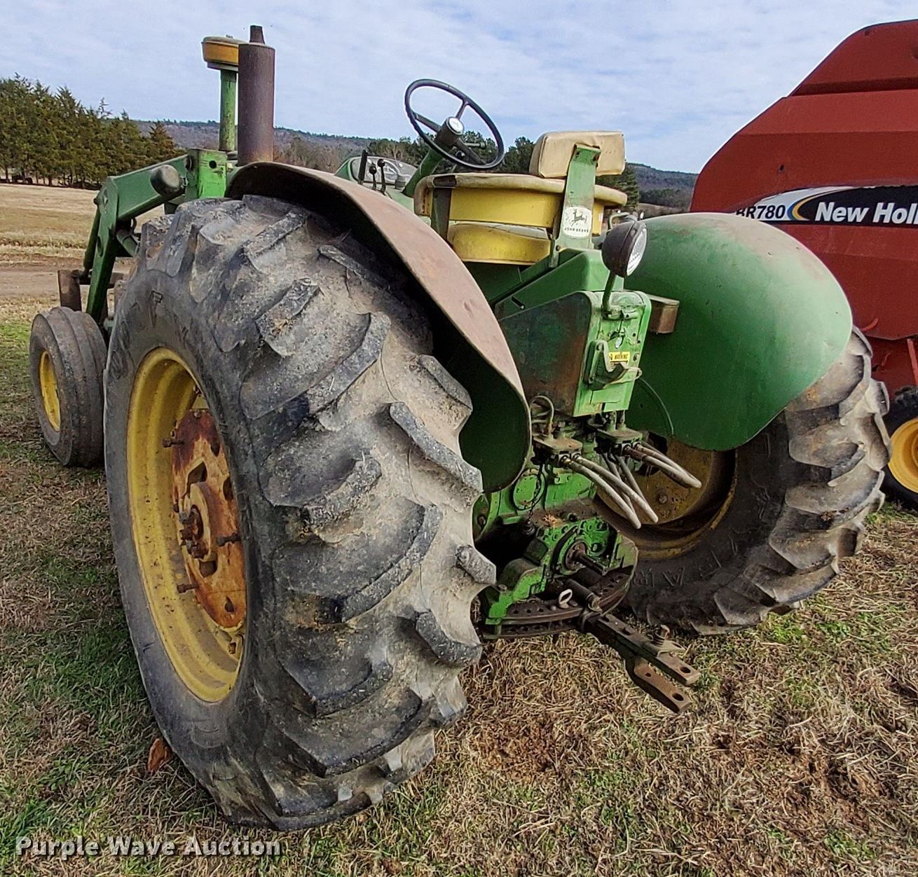 John Deere 4010 tractor. Hours: 3,957 on meter, Serial: 401022T13649. Engine John Deere, Cylinders: 6, Fuel type: Diesel. Transmission Manual, 8F - 2R, Differential lock. Features PTO: 540, Hydraulic remote sets Rear: 2, Loader John Deere 158, Bale spear, Controls: Two-lever. Tires Front: 10.00-16, Rear: 18.4-34, Wheel weights: 2. Notes Replacement spindle included. 399 Coleman Road. Magazine, AR 72943