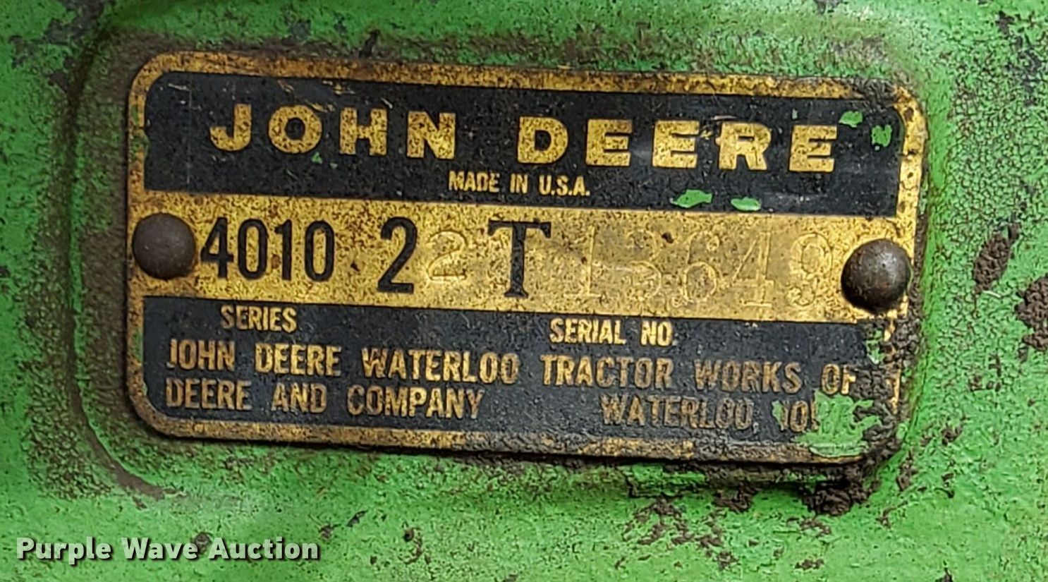 Purple Wave is selling a used Tractor in Arkansas. This item is a John Deere 4010 tractor with the following: Hours: 3,957 on meter, Serial: 401022T13649