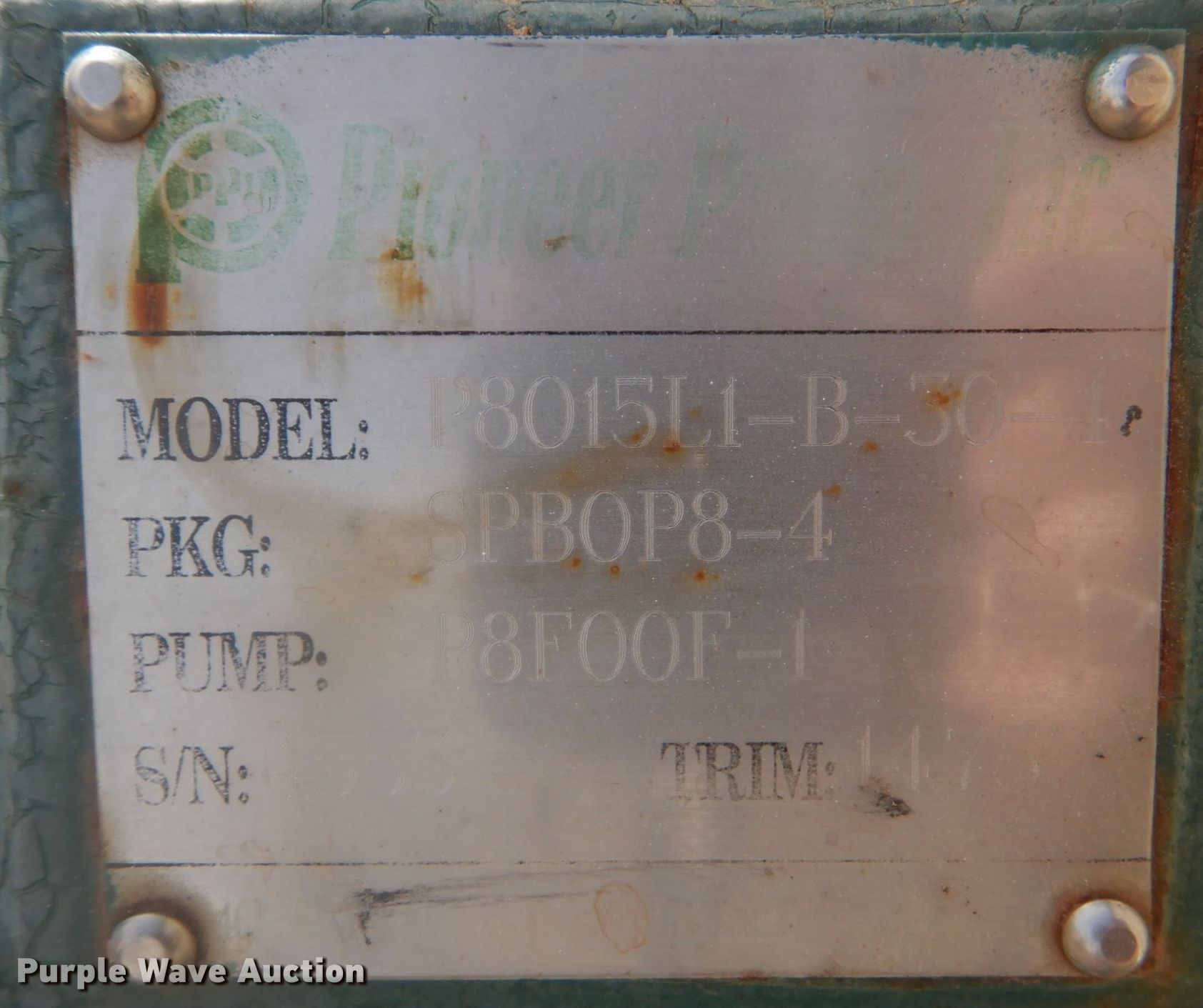 Purple Wave is selling a used Irrigation Pump in Arkansas. This item is a Pioneer P8015L1-B-30-4 irrigation pump with the following: Outlet: 8", Serial: 4553
