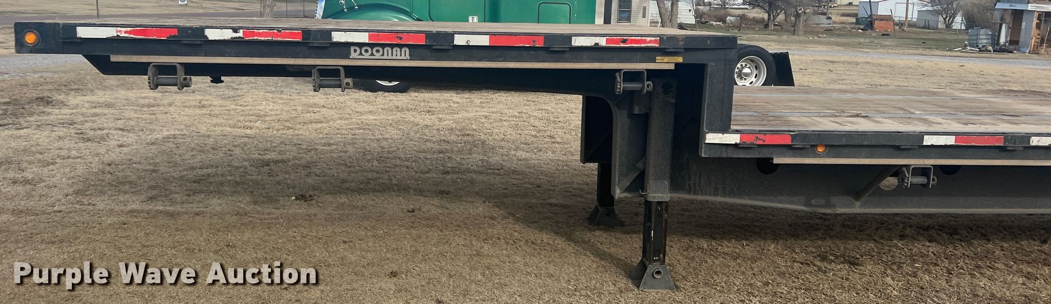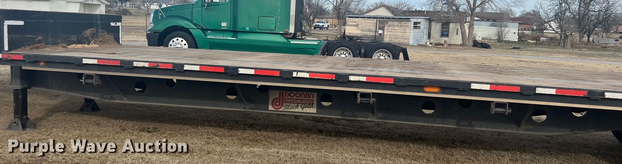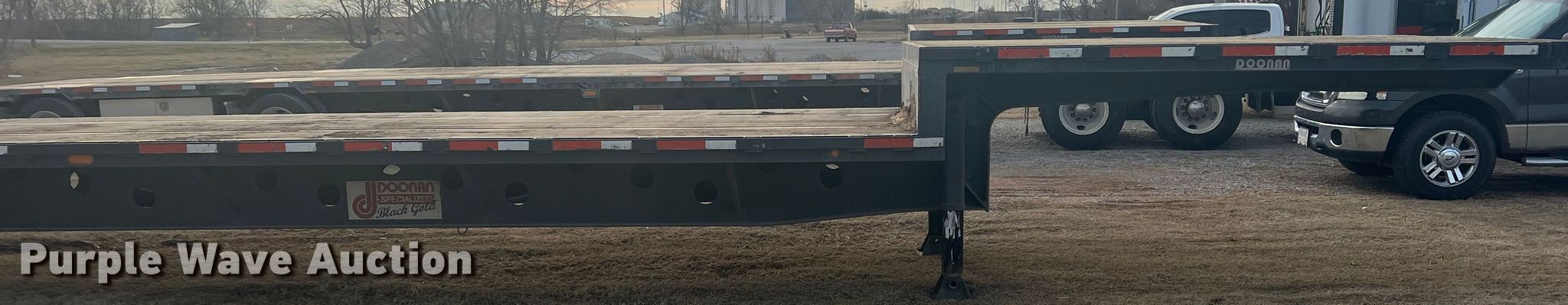 2015 Doonan CDKH drop deck equipment trailer. VIN: 1D9BG5327F1609133. Dimensions Overall: 53' L x 102" W, Deck: 41' L x 102" W, Top deck length: 12'. Features Deck type: Wood. Chassis Landing gear: Dual, Suspension: Air, Brakes: Air, Axles: Spread, GVWR: 90,000 lbs. Tires Steel wheels, Size: 255/70R22.5. Oklahoma title. Title distribution may be delayed up to 14 days from verification of funds. Charles Kendricks Trucking LLC. 810 West 11th Street. Hobart, OK 73651