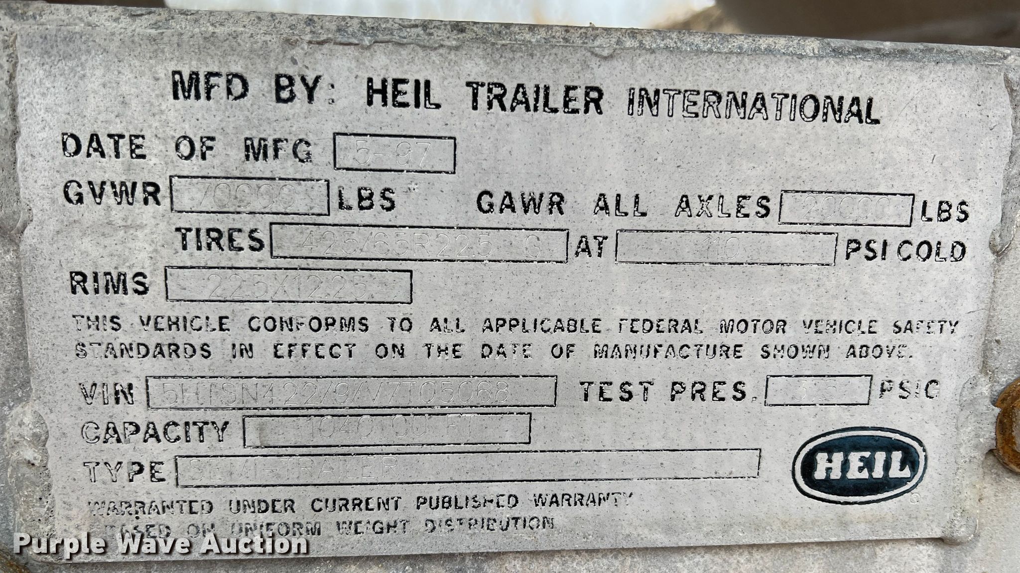 Purple Wave is selling a used Tank Trailer in Missouri. This item is a 1997 Heil pneumatic dry bulk trailer with the following: VIN: 5HTSN4229V7T05068
