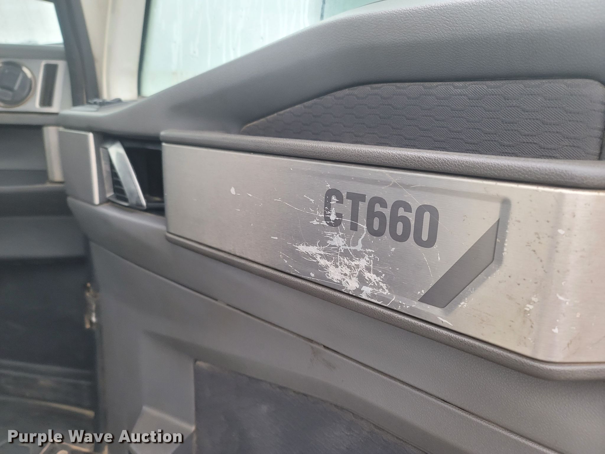 2012 Caterpillar CT660S truck cab and chassis. Miles: Unknown, VIN: 1HTJGTKT2CJ651141. Engine Caterpillar CT13, Displacement: 13.0L, Cylinders: 6, Fuel type: Diesel. Transmission Eaton Fuller, Manual, Speed: 10. Chassis Axles: Tandem, Differential lock: Full, Brakes: Air, PTO, Truck chassis: 15' 4", GVWR: 58,180 lbs FAWR: 18,180 lbs, IAWR: 20,000 lbs, RAWR: 20,000 lbs. Interior AC, Heat, Power windows, Power locks, Cruise control. Features Fuel tank: Single. Tires Front: 315/80R22.5, Rear: 11R22.5. Notes Dash warning indicator: Check engine, ABS. Arkansas title. Mileage has not been verified. Exempt will be written in the odometer disclosure on the title. Fureigh Electric. 31 Drillers Drive. Conway, AR 72032