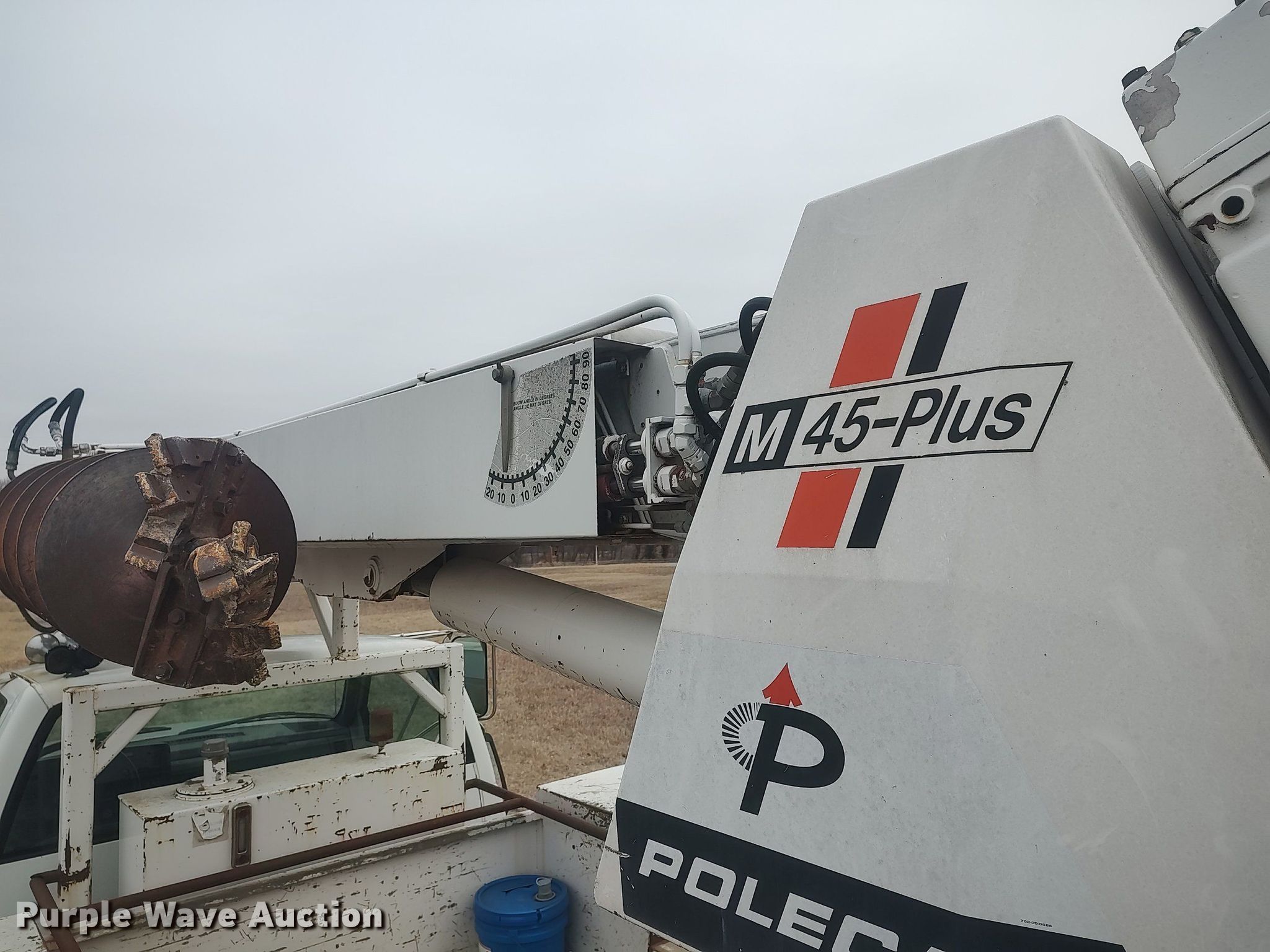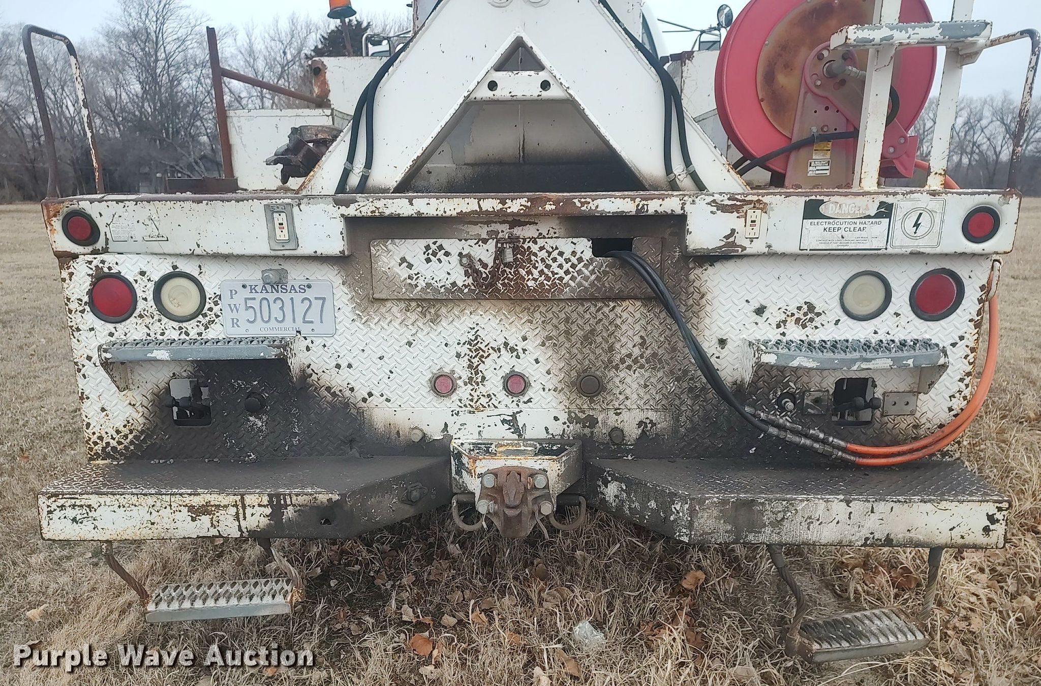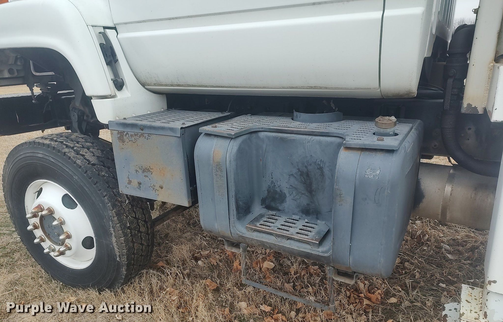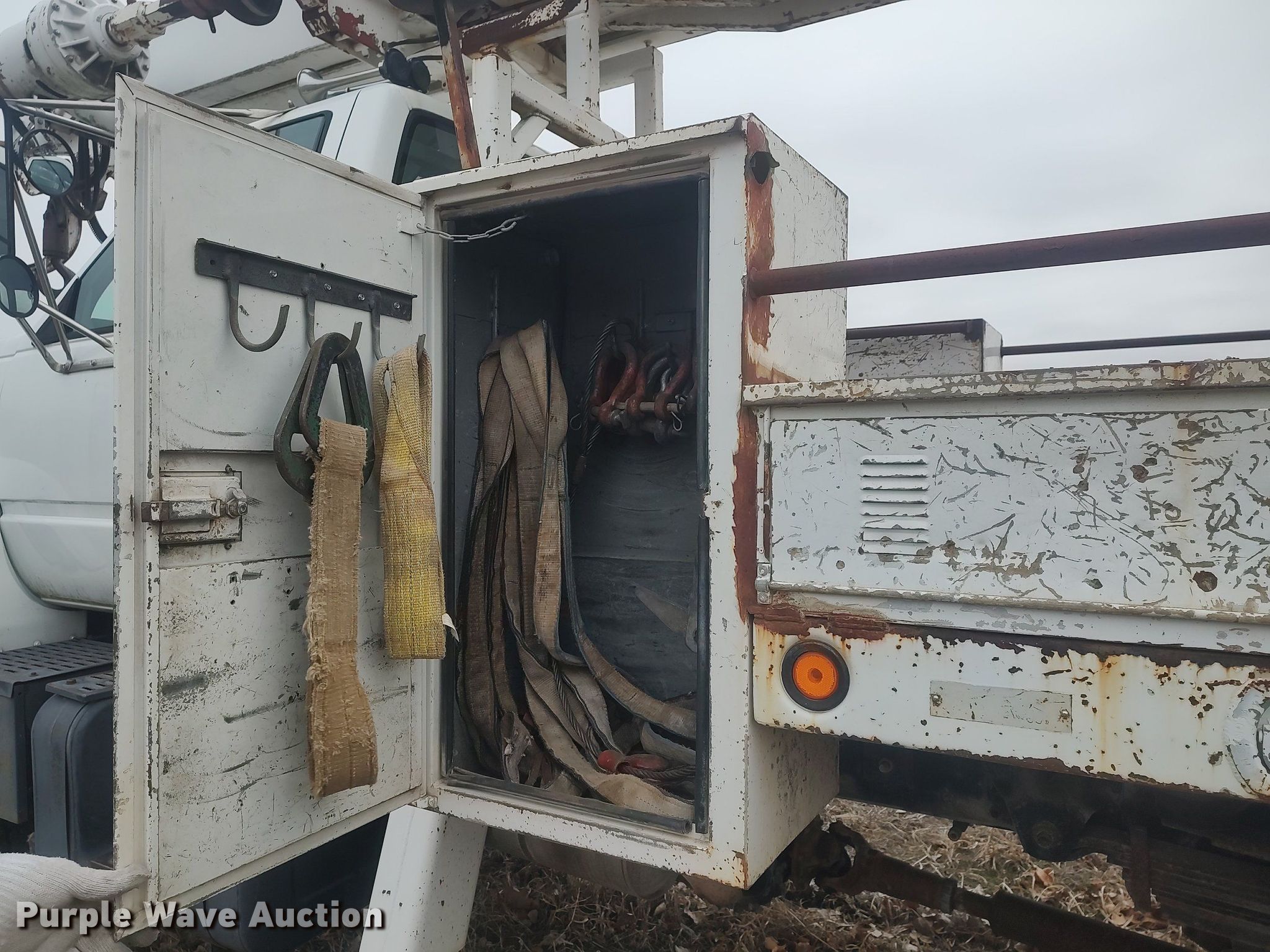 2000 Chevrolet C7500 digger derrick truck. Miles: 102,374 on odometer, VIN: 1GBM7H1C3YJ505223. Engine Caterpillar 3126, Serial: 8YL11012, Displacement: 7.2L, Cylinders: 6, Fuel type: Diesel, HP: 275. Transmission Eaton Fuller, Manual, Speed: 9. Chassis Four wheel drive, Axles: Single, Suspension: Spring, Brakes: Air, PTO, GVWR: 32,000 lbs. Interior AC, Heat, Cruise control. Features Boom Pole cat M 45-Plus, Boom length: 45', Maximum lift capacity: 14,000 lbs, Boom type: Telescopic, Boom controls Platform/ basket, Pole guide, Auger Diameter: 18", Diametter: 8".. Tires Size: 11R22.5. Kansas title. Title distribution may be delayed up to 14 days from verification of funds. Bills Electrical Inc. El Dorado, KS 67042