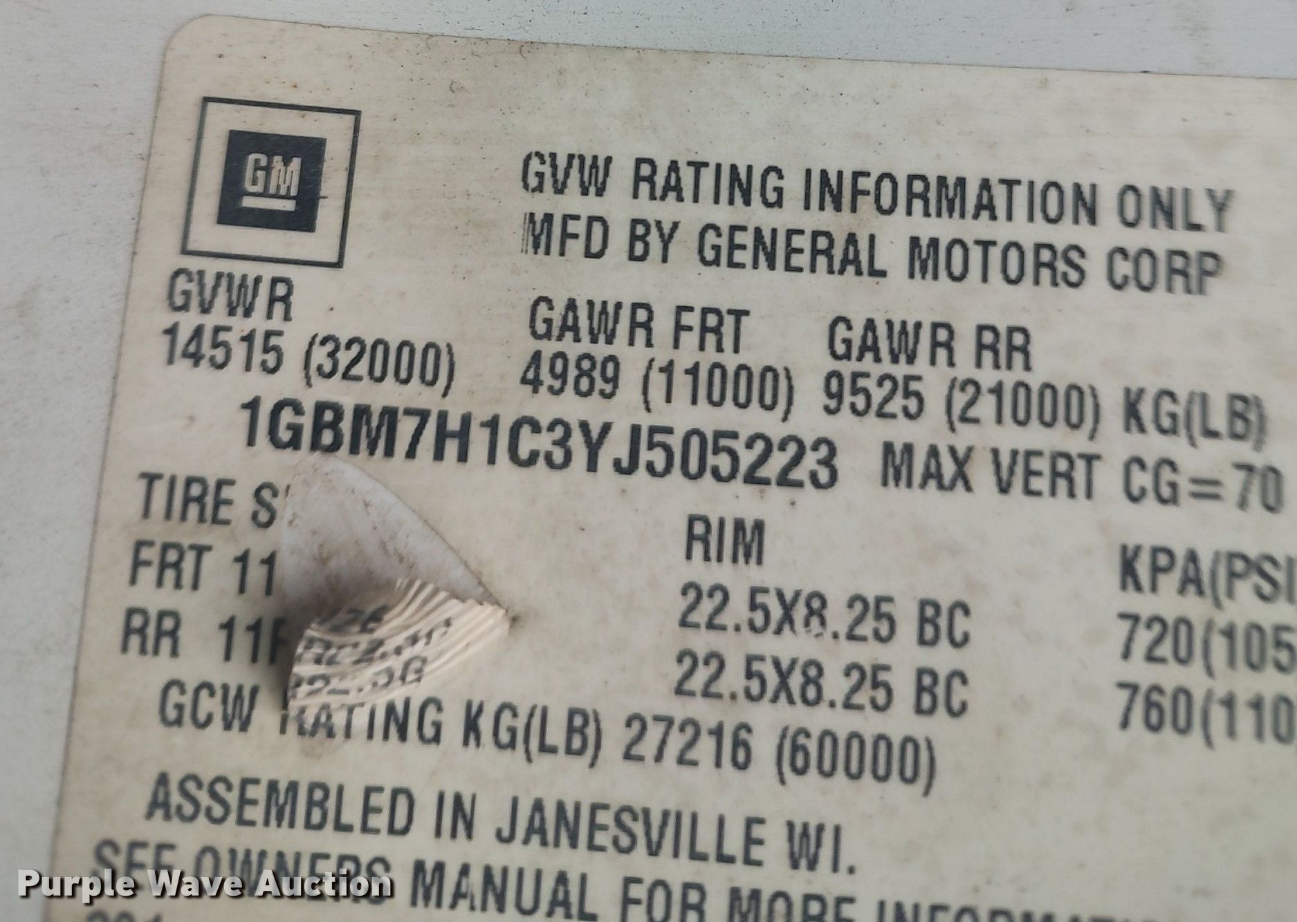 Purple Wave is selling a used Digger Derrick Truck in Kansas. This item is a 2000 Chevrolet C7500 digger derrick truck with the following: Miles: 102,374 on odometer, VIN: 1GBM7H1C3YJ505223