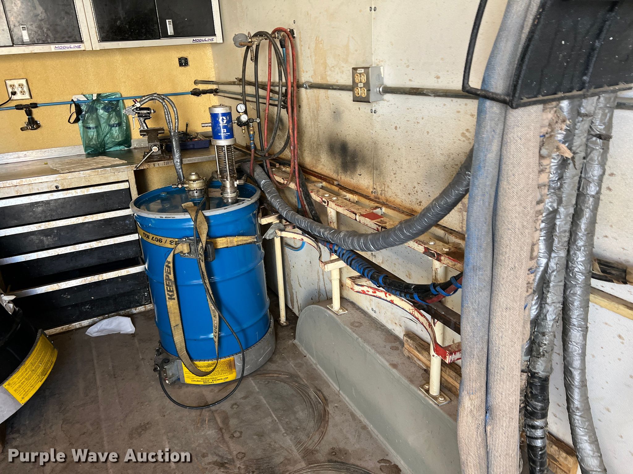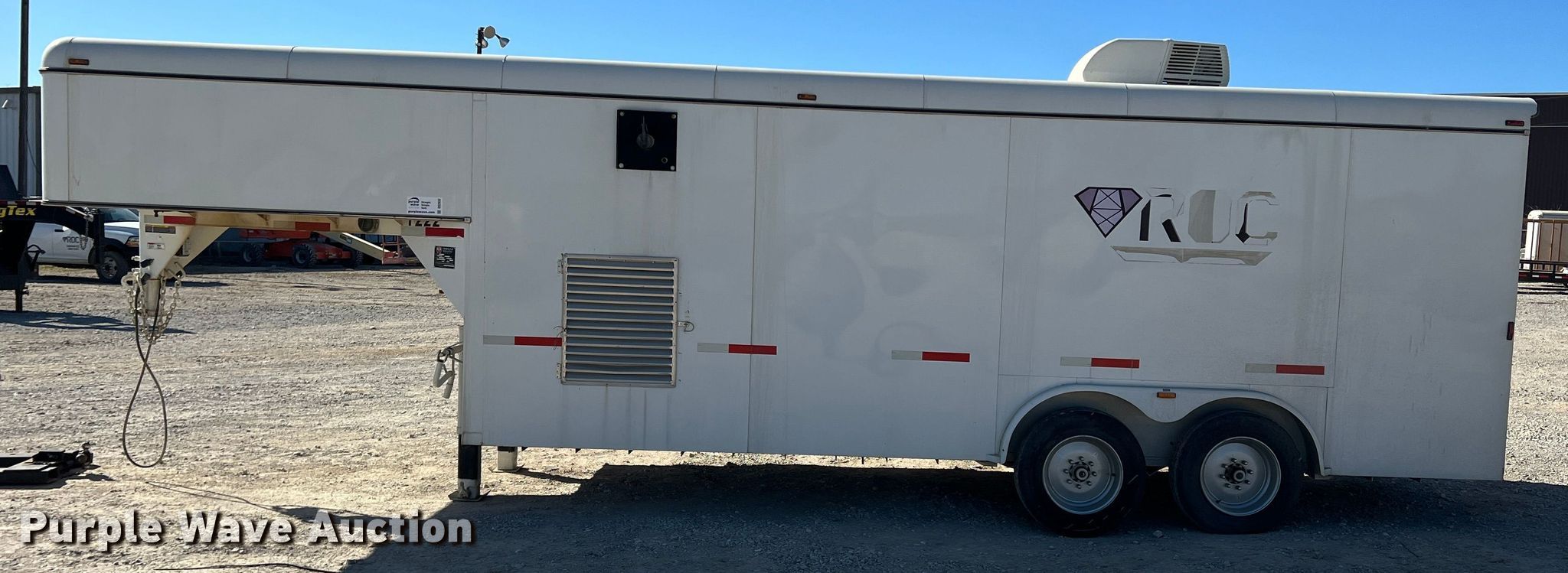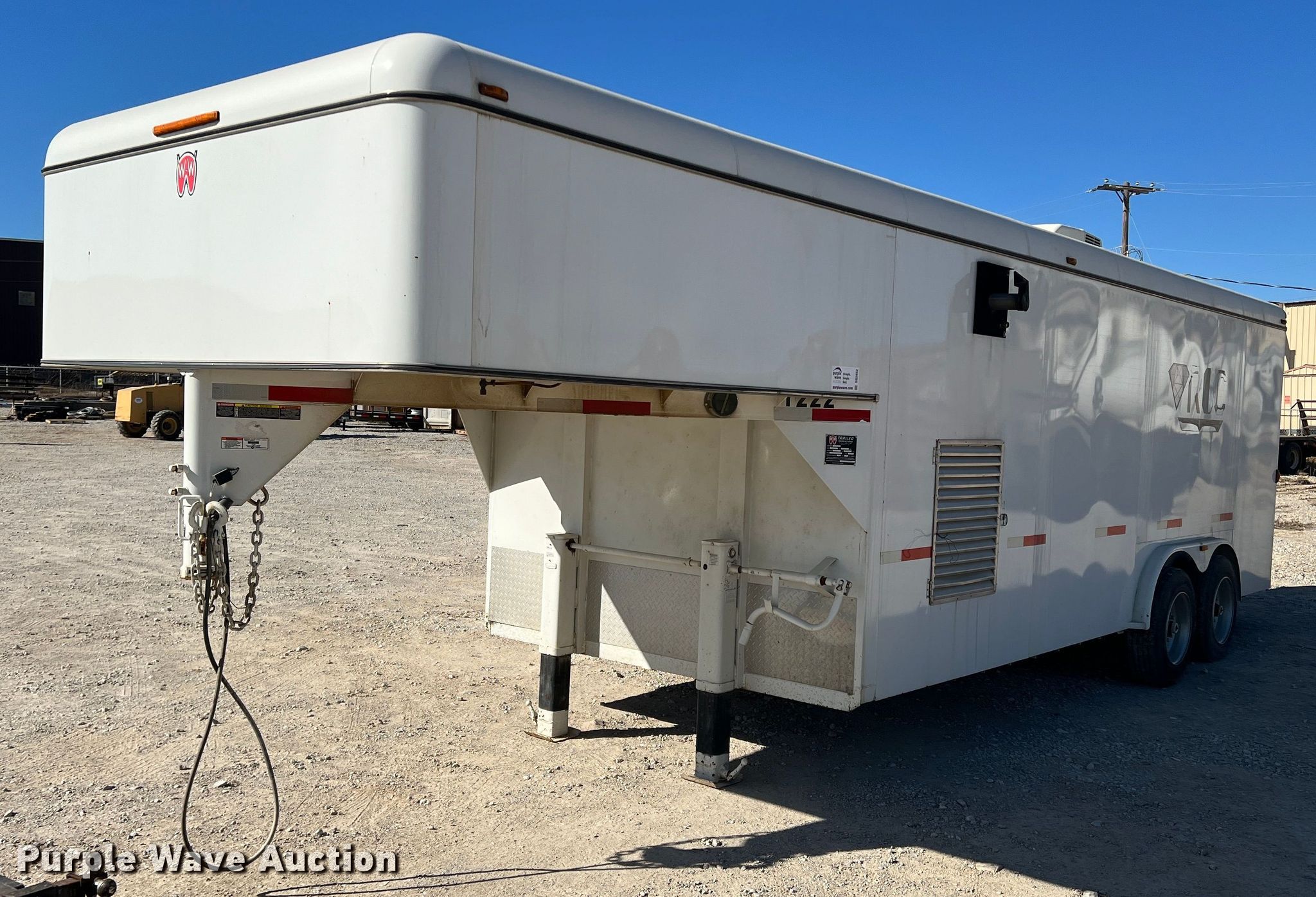 2017 W-W Trailers enclosed cargo trailer. Hours: 2790 on meter, VIN: 11W4C2023HW316590, Unit #: T-222. Dimensions Overall: 28' L x 101" W, Body: 28' L x 95" W. Features Deck type: Wood. Chassis Hitch: Gooseneck, Landing gear: Dual, Two speed, Brakes: Electric, Axles: Tandem, GVWR: 16,000 lbs. Features Graco Reactor H-XP3 poly sprayer, Sincro IB4MB generator Serial: 377542, 240V, 60Hz, John Deere engine Cylinders: 4, Fuel type: Diesel. Tires Aluminum wheels, Size: 215/75R17.5. Texas title. Title distribution may be delayed up to 45 days from verification of funds. ROC Service. 191 Energy Way. Bridgeport, TX 76426
