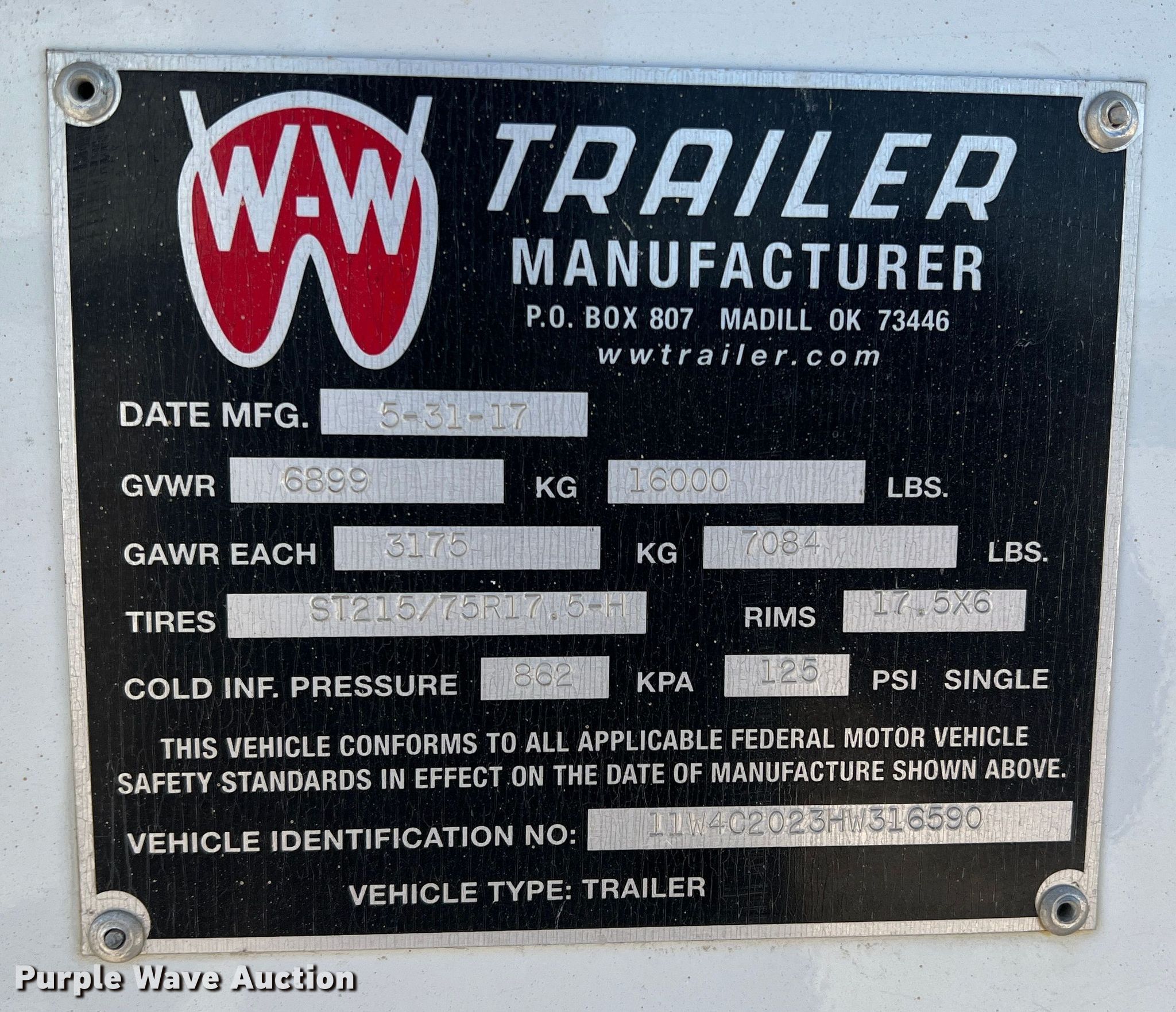 Purple Wave is selling a used Enclosed Cargo Trailer in Texas. This item is a 2017 W-W Trailers enclosed cargo trailer with the following: Hours: 2790 on meter, VIN: 11W4C2023HW316590, Unit #: T-222
