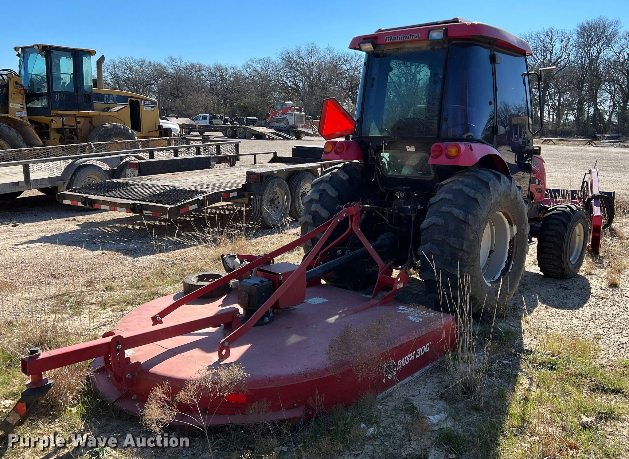 Mahindra 6010 MFWD tractor. Hours: 1,694 on meter, Serial: 60HCF00156. Engine Cylinders: 4, Fuel type: Diesel. Transmission Hydrostatic, 3F - 3R. Operators station AC, Heat. Features PTO: 540, Three point Top link, Hydraulic remote sets Rear: 2, Loader Model: ML156, Controls: Joystick, Bucket Width: 72", Bush Hog BH26 Shredder 6" W, 540 pto. Tires Front: 12-16.5, Rear: 16.9-24. Notes Dead battery, Loader mount issues, Unknown operating condition. ROC Service. 3419 N Main St. Cleburne, TX 76033