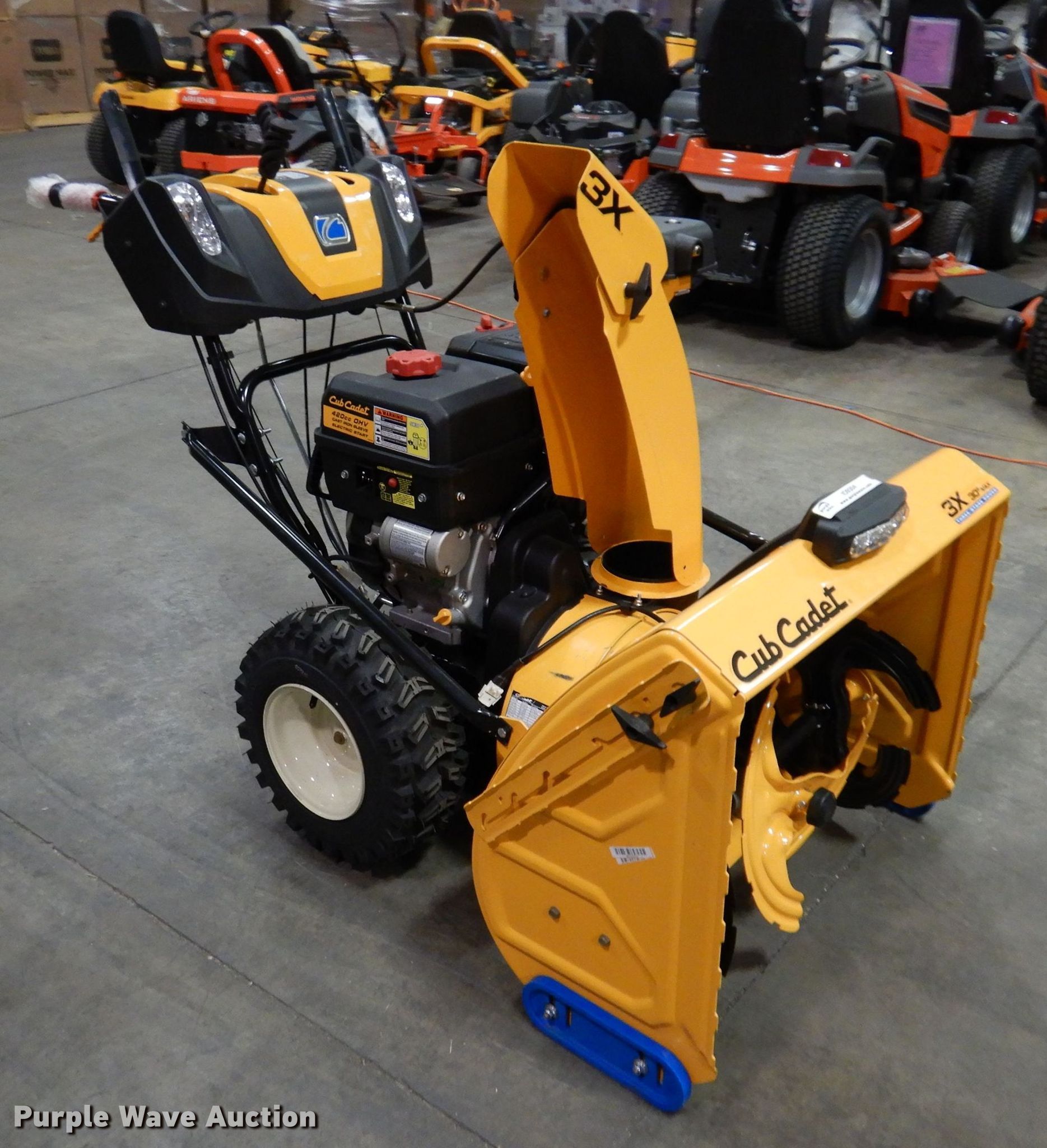 Purple Wave is selling a used Lawn and Garden in Iowa. This item is a 2019 Cub Cadet 3X snow blower with the following: Displacement: 420 cc, Cylinders: 1, Fuel type: Gas, Electric start