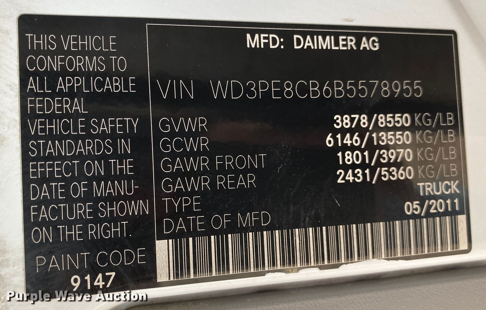 - VIN: WD3PE8CB6B5578955