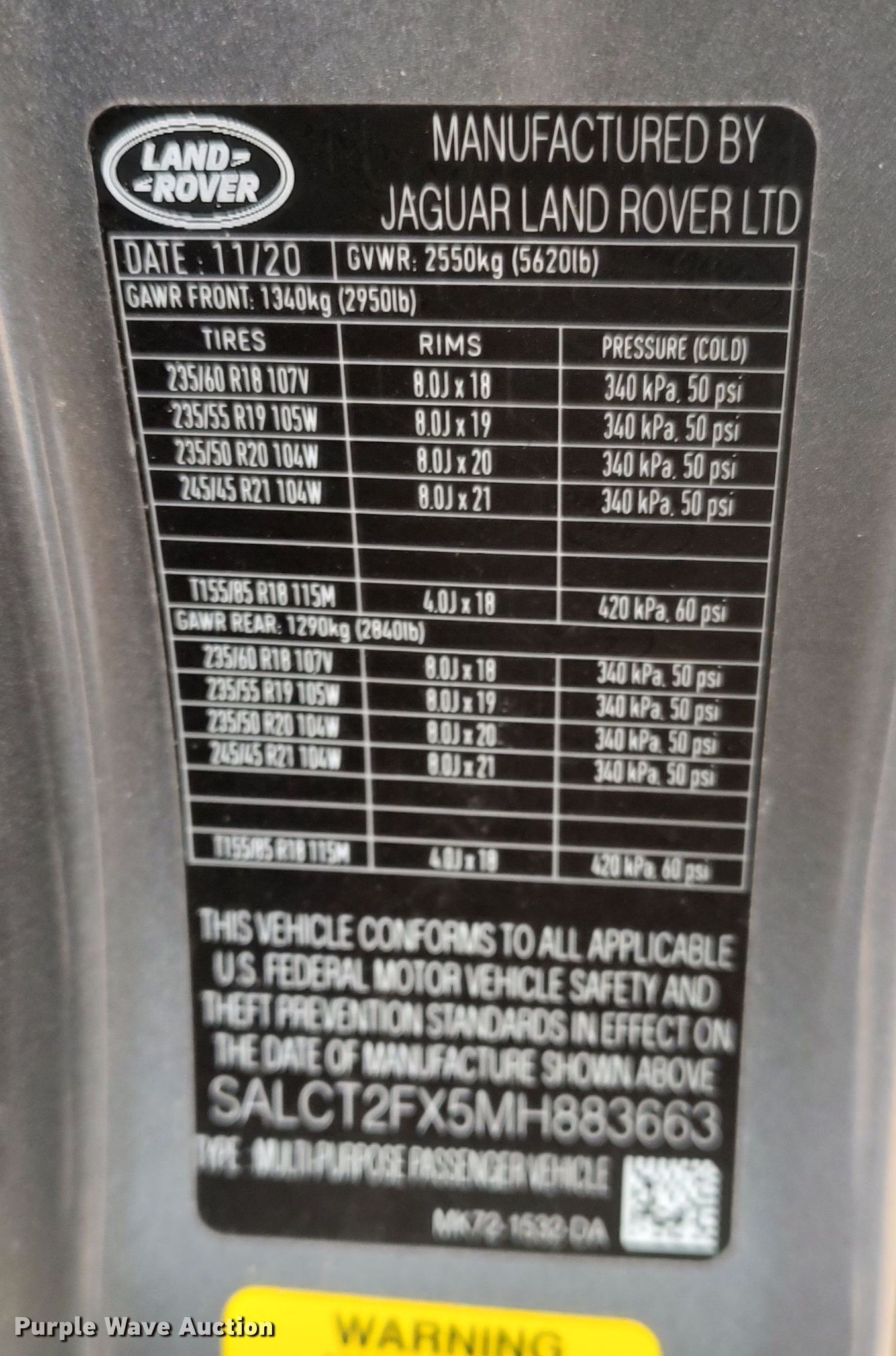 - VIN: SALCT2FX5MH883663