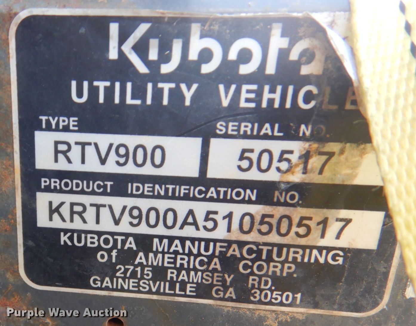 Purple Wave is selling a used Utility Vehicle in Louisiana. This item is a Kubota RTV900 utility vehicle with the following: Hours: 2,027 on meter, VIN: KRTV900A51050517