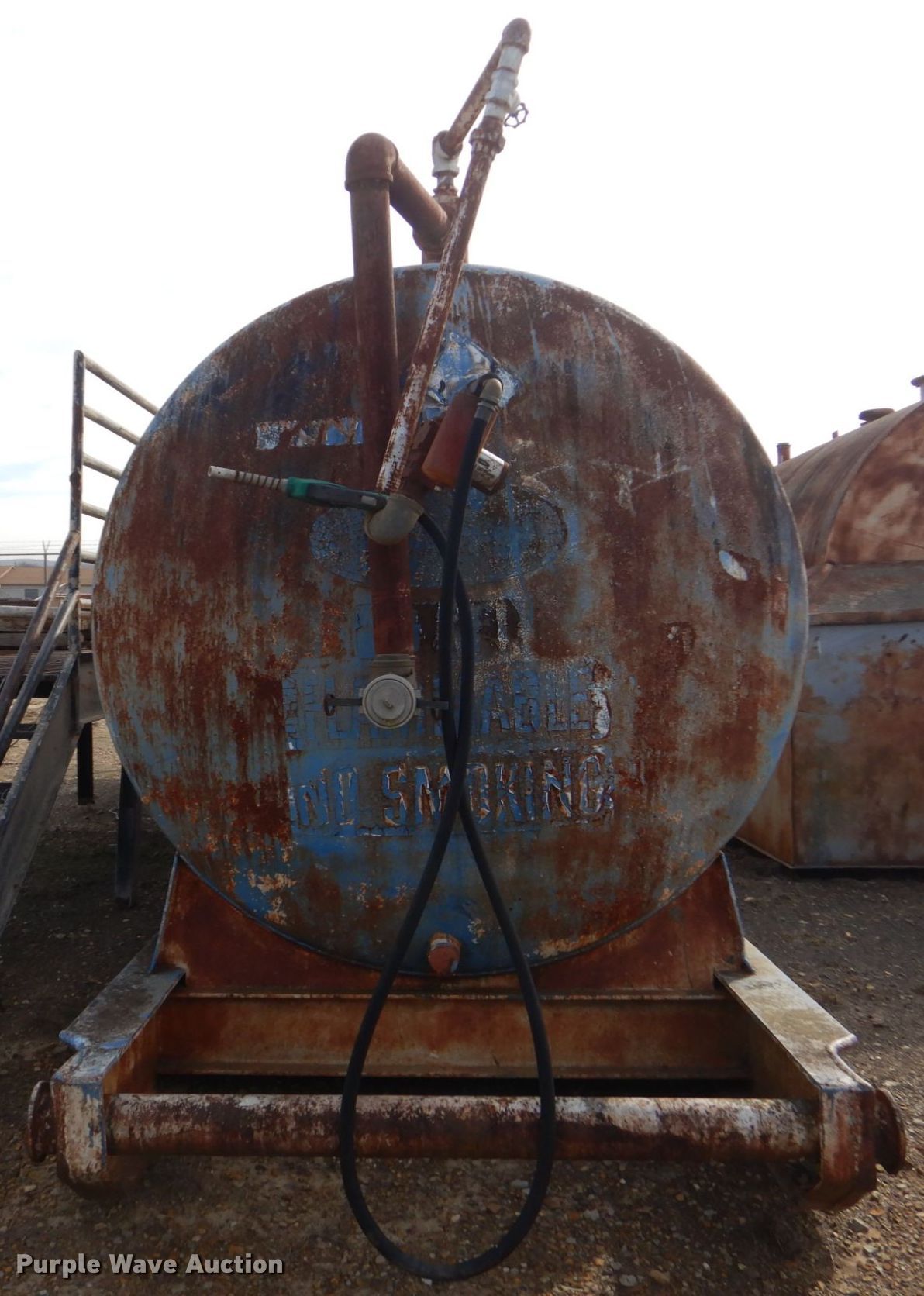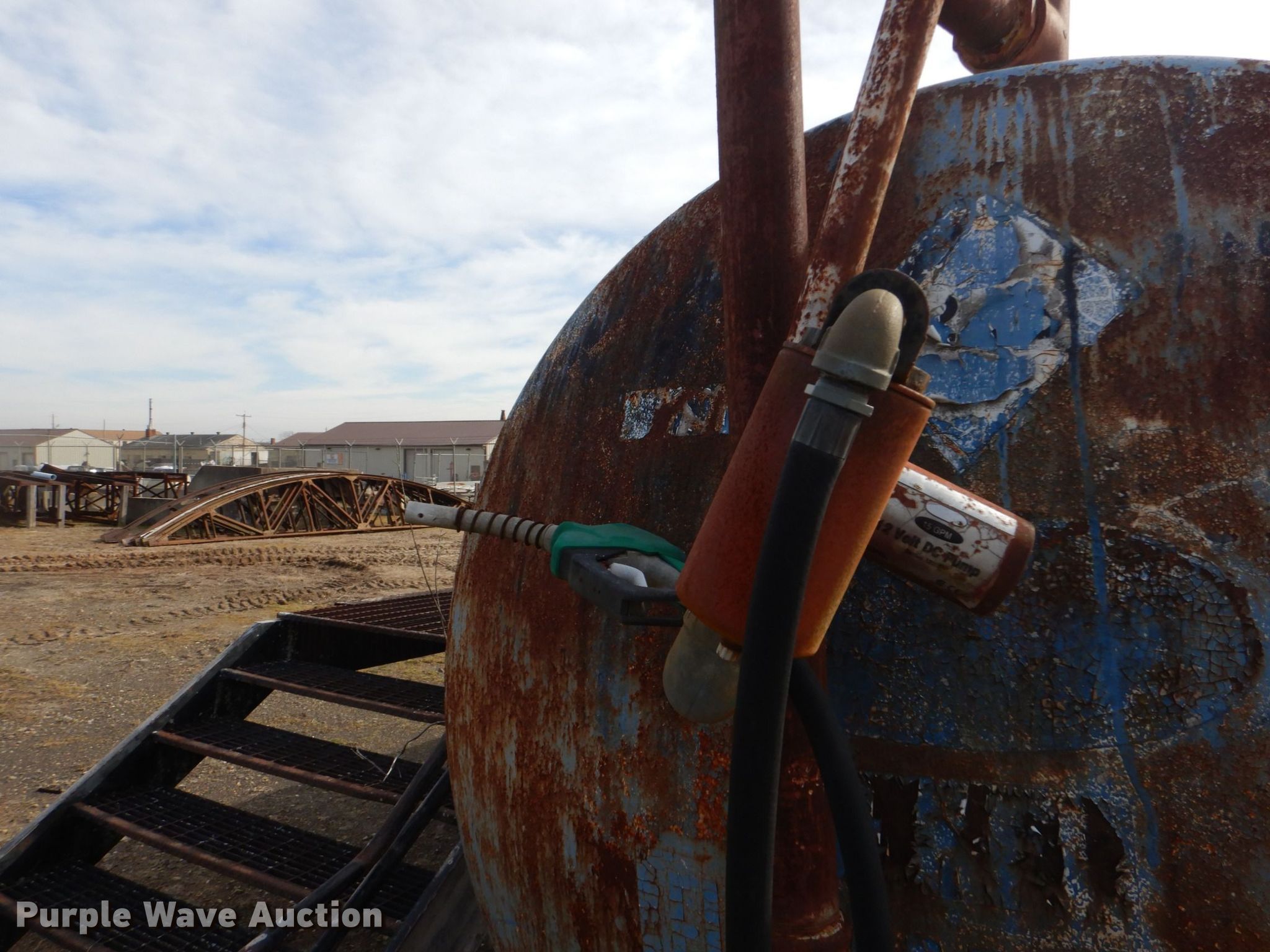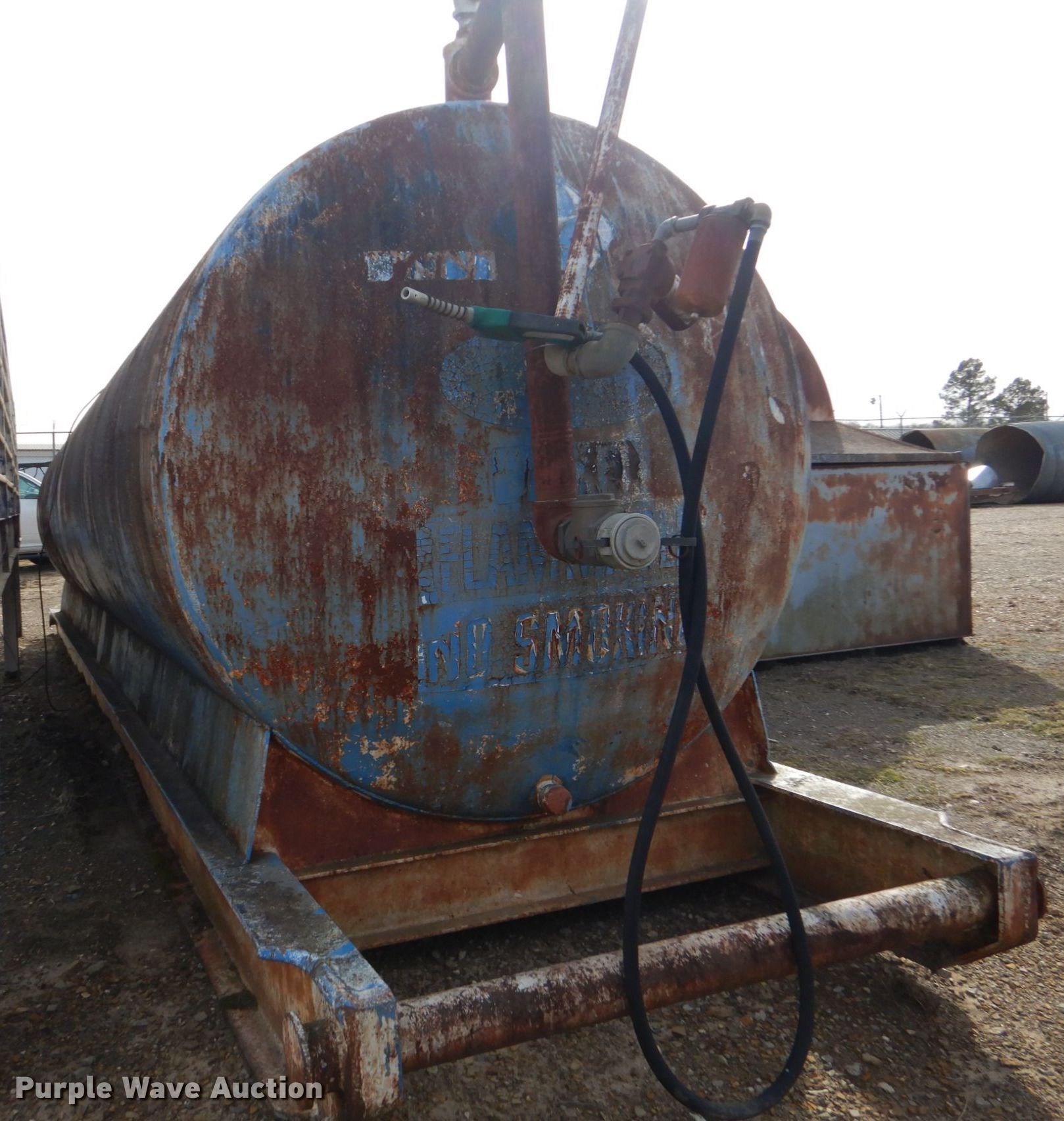 Purple Wave is selling a used Fuel and Lube in Arkansas. This item is a Fuel tank with the following: Skid mounted, 33' 2" L x 66" W, 2" outlet, 3" outlet, 12 V pump, 15 GPM, Hose and nozzle