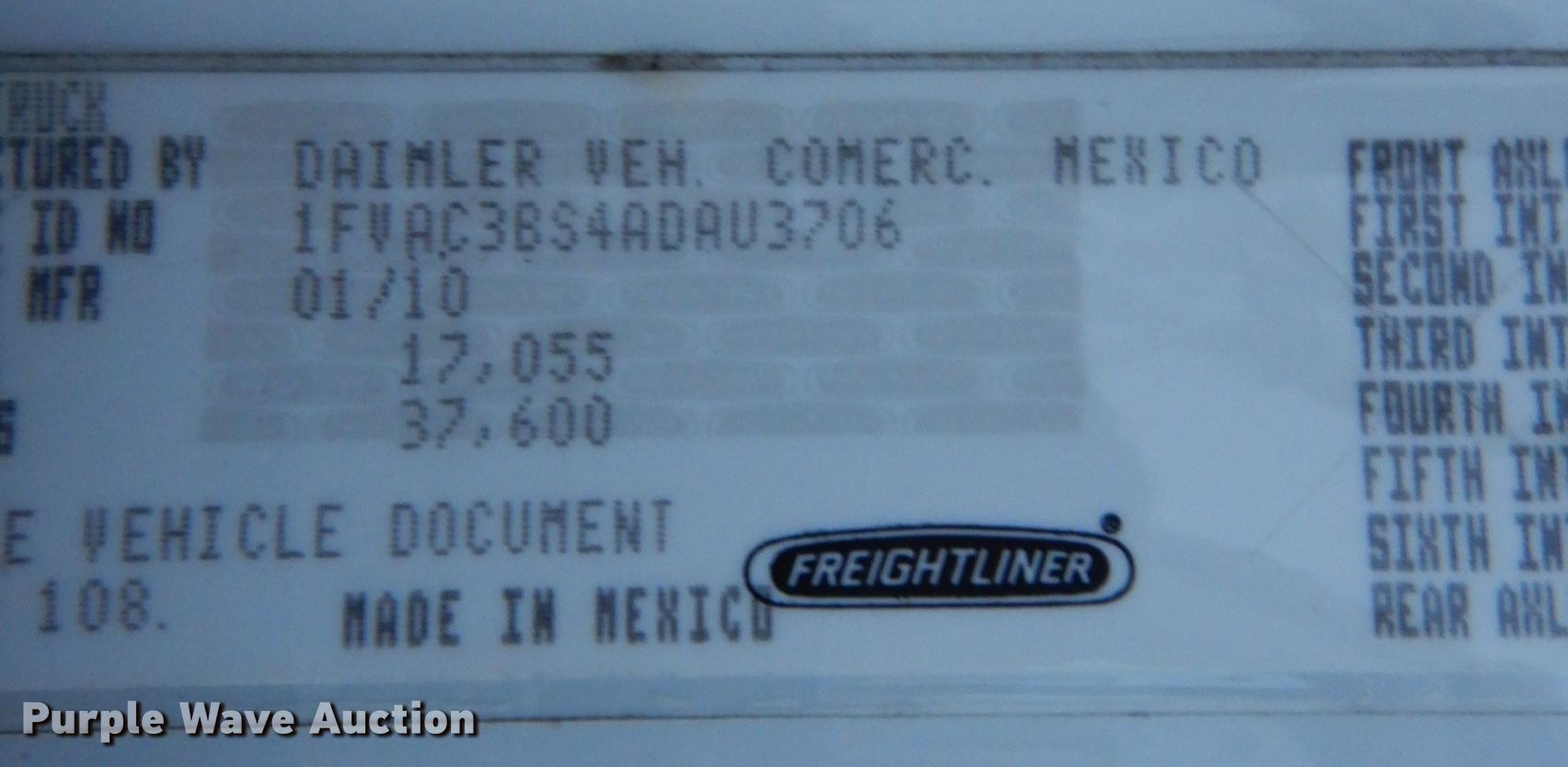 - VIN: 1FVAC3BS4ADAU3706