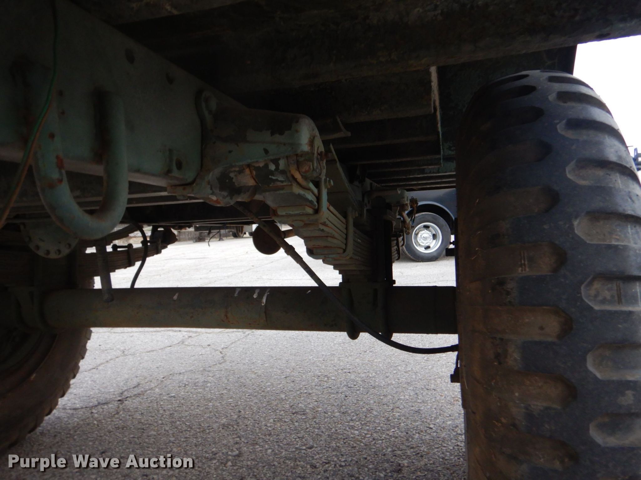 1966 Johnson Corp TM9 utility trailer. VIN: 0624268. Dimensions Overall: 13' 9" L x 6' 10" W, Deck: 9' 2" L x 6' 2" W, Side height: 4', Deck height: 2' 10". Features Deck type: Steel, Fold down tailgate. Chassis Hitch: Pintle, Landing gear: Single, Suspension: Spring, Brakes: Air. Tires Steel wheels, Size: 9.00-20. Transfer of ownership documentation will be a bill of sale. Blake Construction. 11709 Sagebrush Lane. Fort Smith, AR 72916