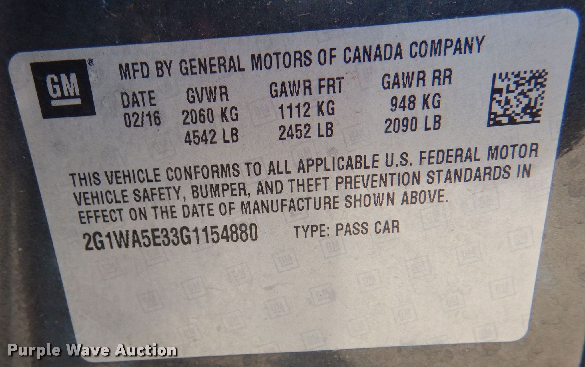 • VIN: 2G1WA5E33G1154880
