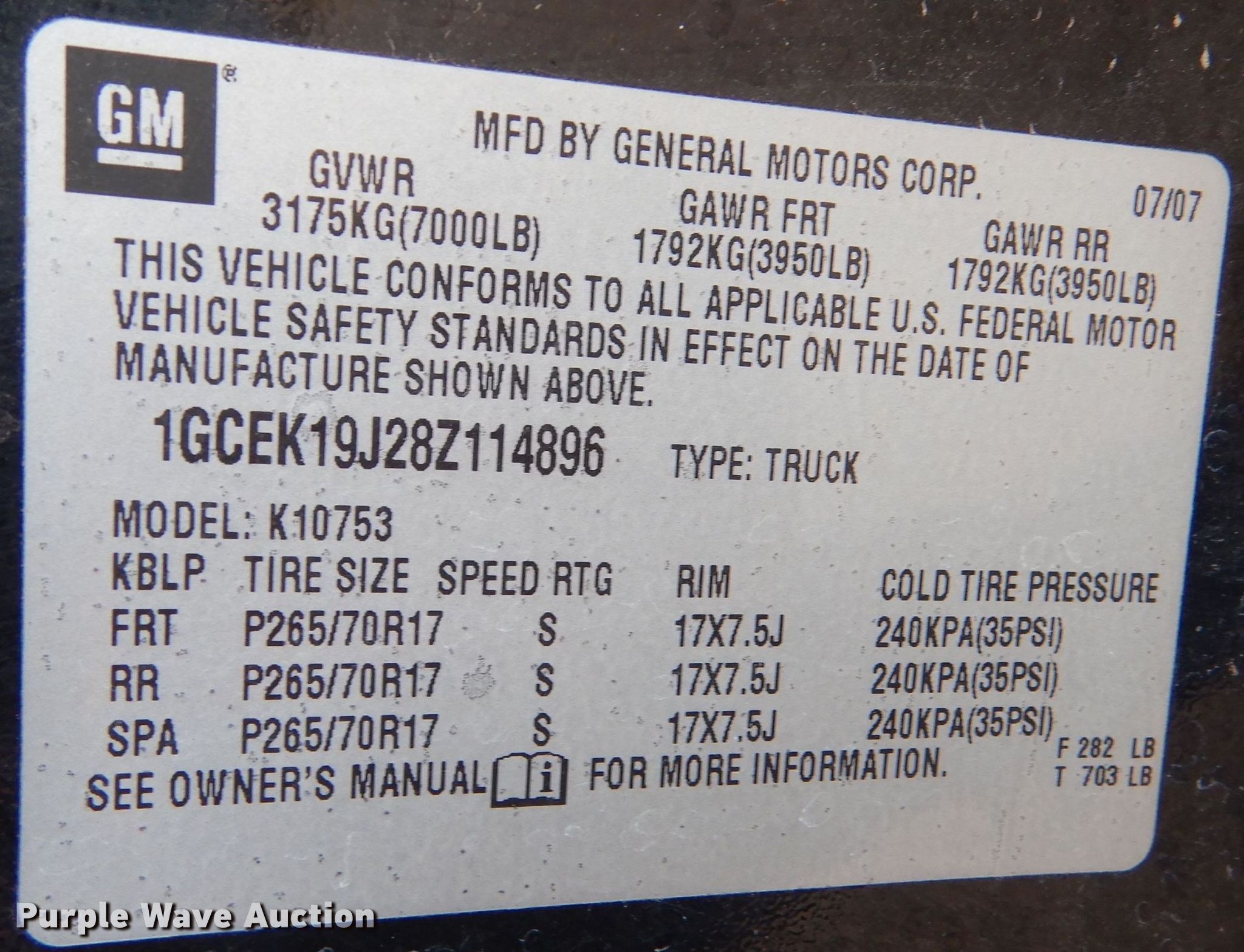 • VIN: 1GCEK19J28Z114896