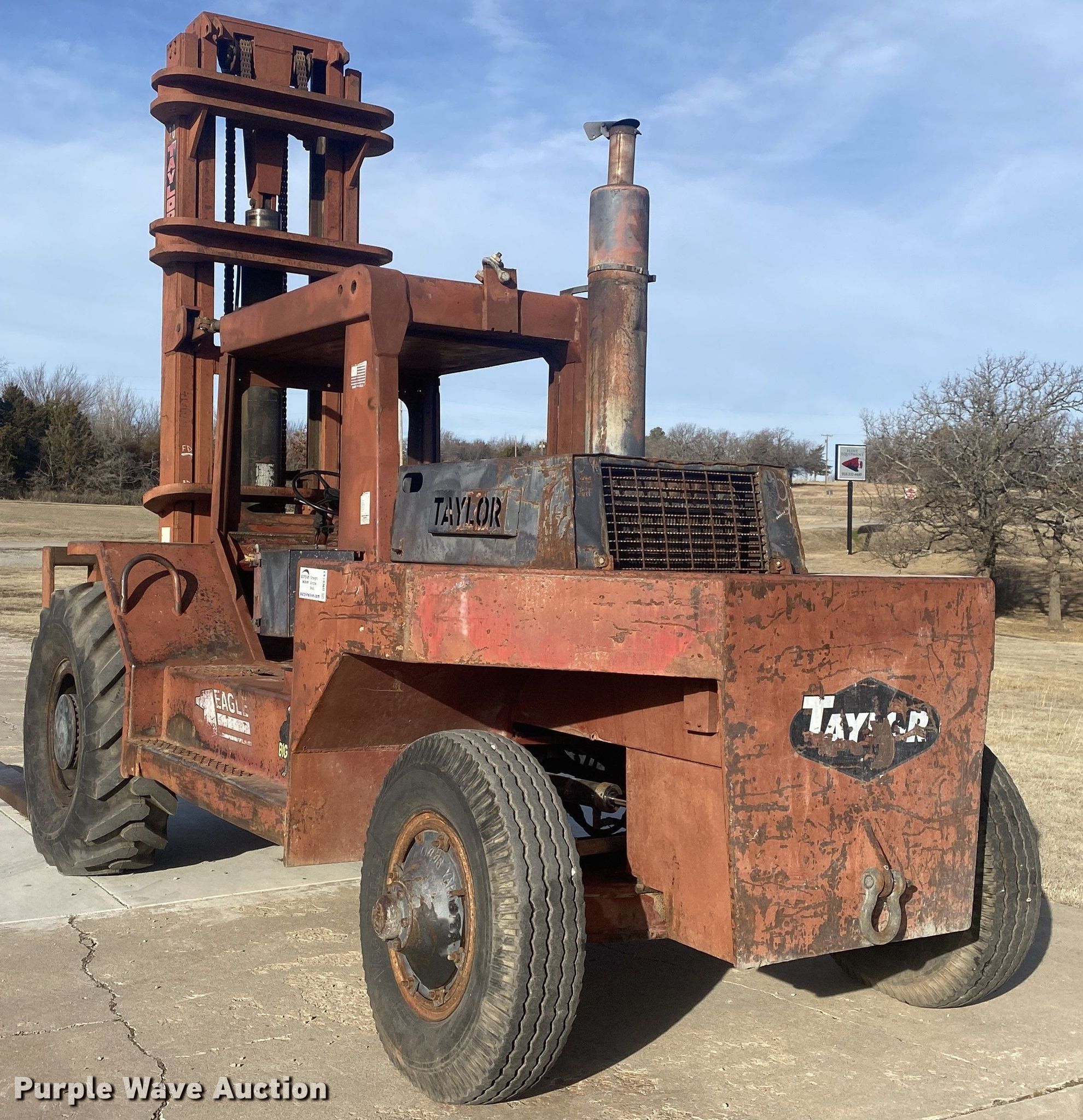 Purple Wave is selling a used Strt. Mast Rough Terr. Forklift in Oklahoma. This item is a Taylor Y-20BW0 forklift with the following: Hours: 4,977 on meter, Serial: 3026