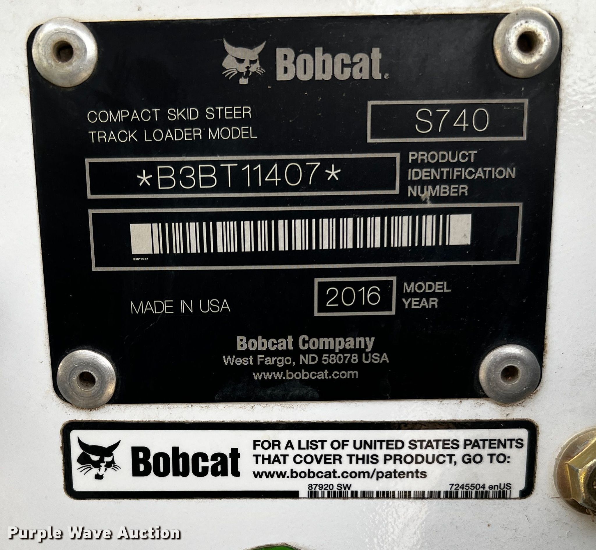 Purple Wave is selling a used Skid Steer Loader in Texas. This item is a 2016 Bobcat S740 skid steer loader with the following: Hours: 1,002 on meter, Serial: B3BT11407