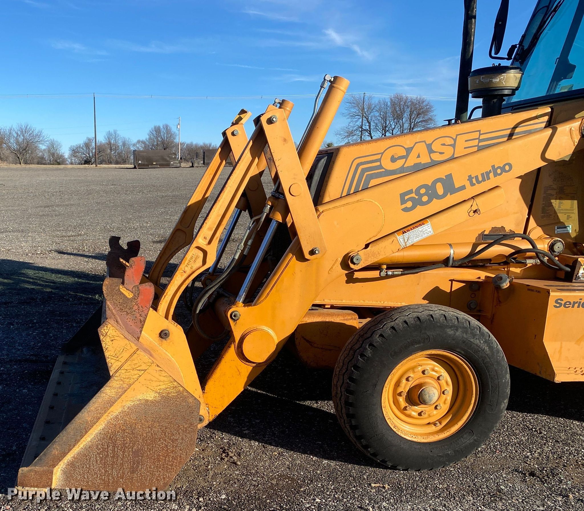 Case 580L backhoe. Hours: 1,109 on meter, Serial: JJG0248773. Engine Cylinders: 4, Fuel type: Diesel. Transmission Shuttle shift, 4F - 4R. Operators station Enclosed cab, Heat, Backhoe controls: Wobble stick / two stick. Features Loader Bucket Width: 81", Cutting edge: Bolt-on, Backhoe Extendable stick, Bucket Woods, Width: 17", Teeth: 4.. Tires Front: 11L-16SL, Rear: 19.5L-24. 15107 North 137th East Avenue. Collinsville, OK 74021