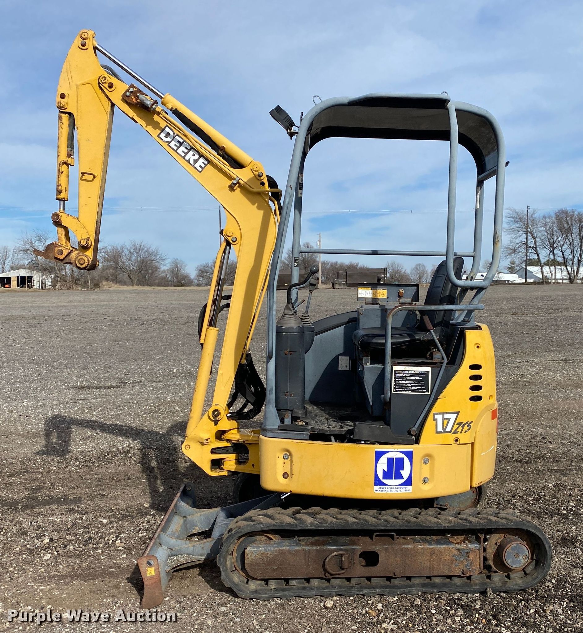 Purple Wave is selling a used Mini Excavator in Oklahoma. This item is a 2006 John Deere 17ZTS mini excavator with the following: Hours: 1,198 on meter, Serial: FF017ZX210645