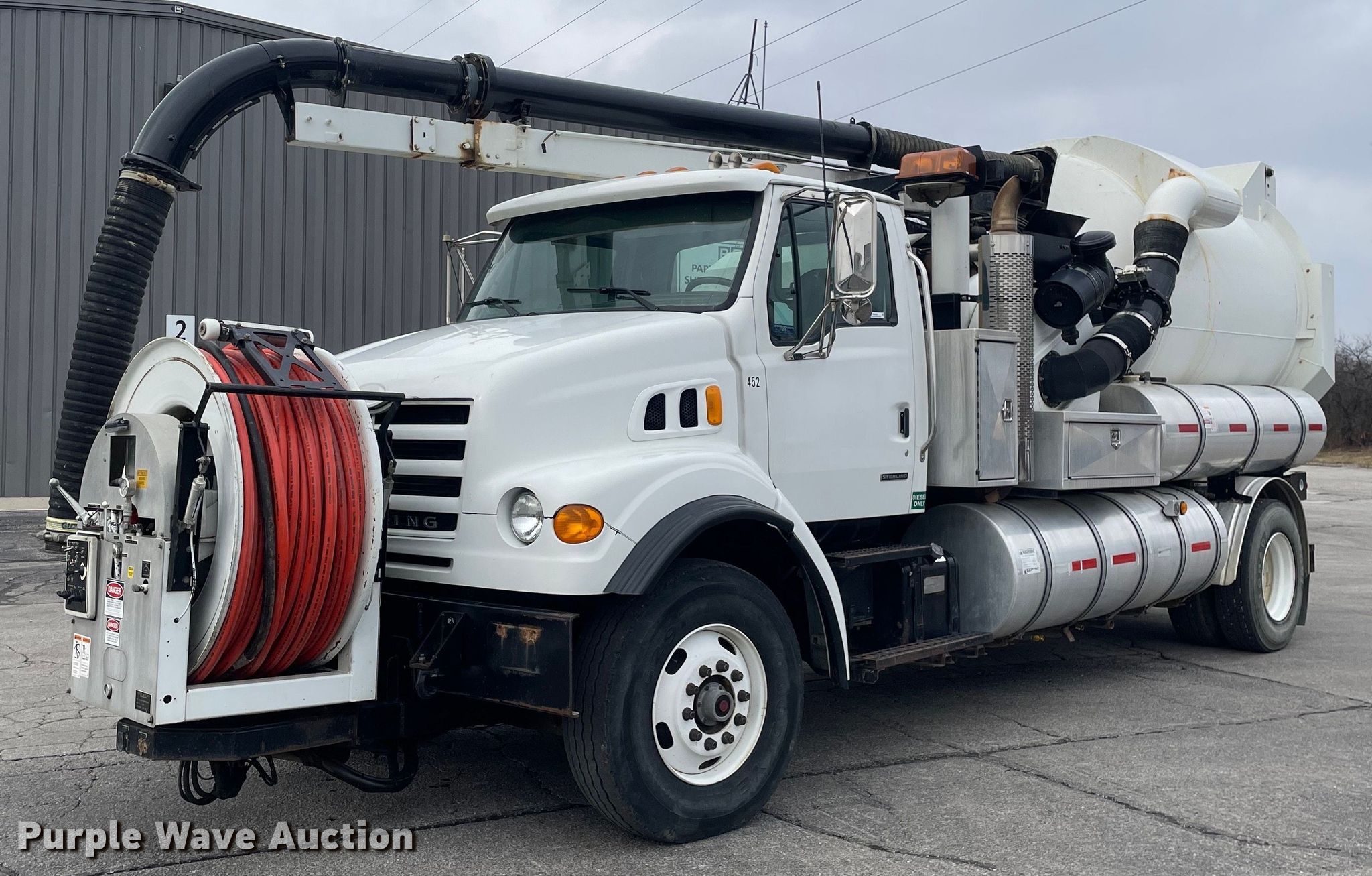 Purple Wave is selling a used Vacuum Truck in Indiana. This item is a 2002 Sterling L7500 sewer jetter truck with the following: Miles: 26,231 on odometer, Hours: 7,865 on meter, VIN: 2FZAATAK42AJ69953