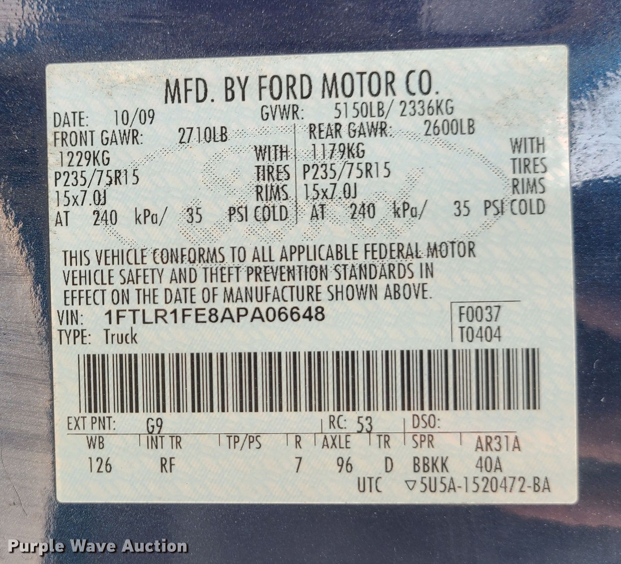 - VIN: 1FTLR1FE8APA06648