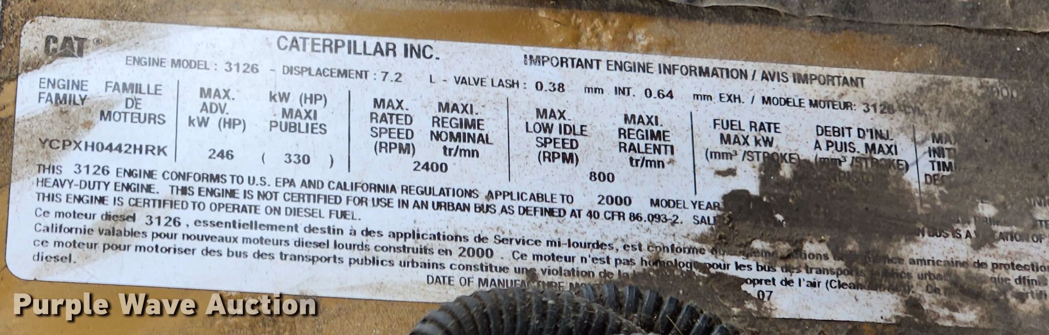 2001 Freightliner FL70 dump truck. Miles: 44,146 on odometer, Hours: 4,220 on meter, VIN: 1FVABTAK61HH81407. Engine Caterpillar 3126, Displacement: 7.2L, Cylinders: 6, Fuel type: Diesel, HP: 330. Transmission Allison, Automatic. Chassis Axles: Single, Suspension: Spring, Brakes: Air, PTO, GVWR: 33,000 lbs FAWR: 12,000 lbs, RAWR: 21,000 lbs, Wheelbase: 155". Interior Heat, Heated mirrors, Cruise control. Features Dump bed 10' L x 96" W, Side height: 30", Side board height: 12", Bed type: Steel, Ram: Single , End gate: Manual, Plow Henke, Width: 132". Tires Size: 11R22.5. Illinois title. Title distribution may be delayed up to 14 days from verification of funds. Village of Godfrey, IL. 7202 Herter Industrial Drive. Godfrey, IL 62035