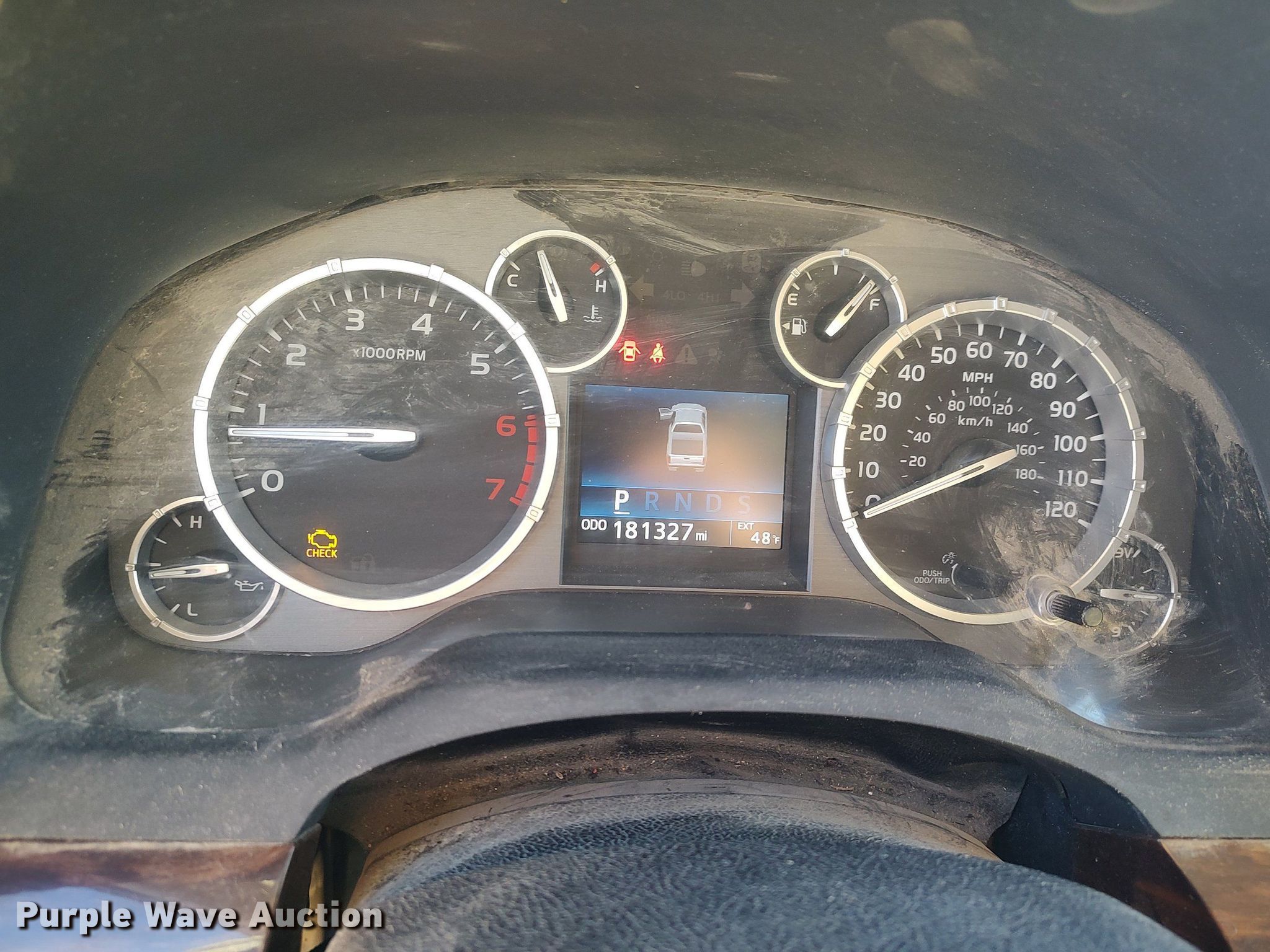 2015 Toyota Tundra Double Cab pickup truck. Miles: 181,327 on odometer, VIN: 5TFBW5F15FX416954. Engine Displacement: 5.7L V8 DOHC, Cylinders: 8, Fuel type: Gas. Transmission Automatic, Four wheel drive. Interior AC, Heat, Seat: Heated, Power driver, Heated mirrors, Power windows, Power locks, Cruise control. Tires Size: 275/70R18. Notes Dash warning indicator: Check engine, Dead battery. Kansas title. Title distribution may be delayed up to 14 days from verification of funds. Chautauqua County. 201 S. Oakland. Chautauqua, KS 67361