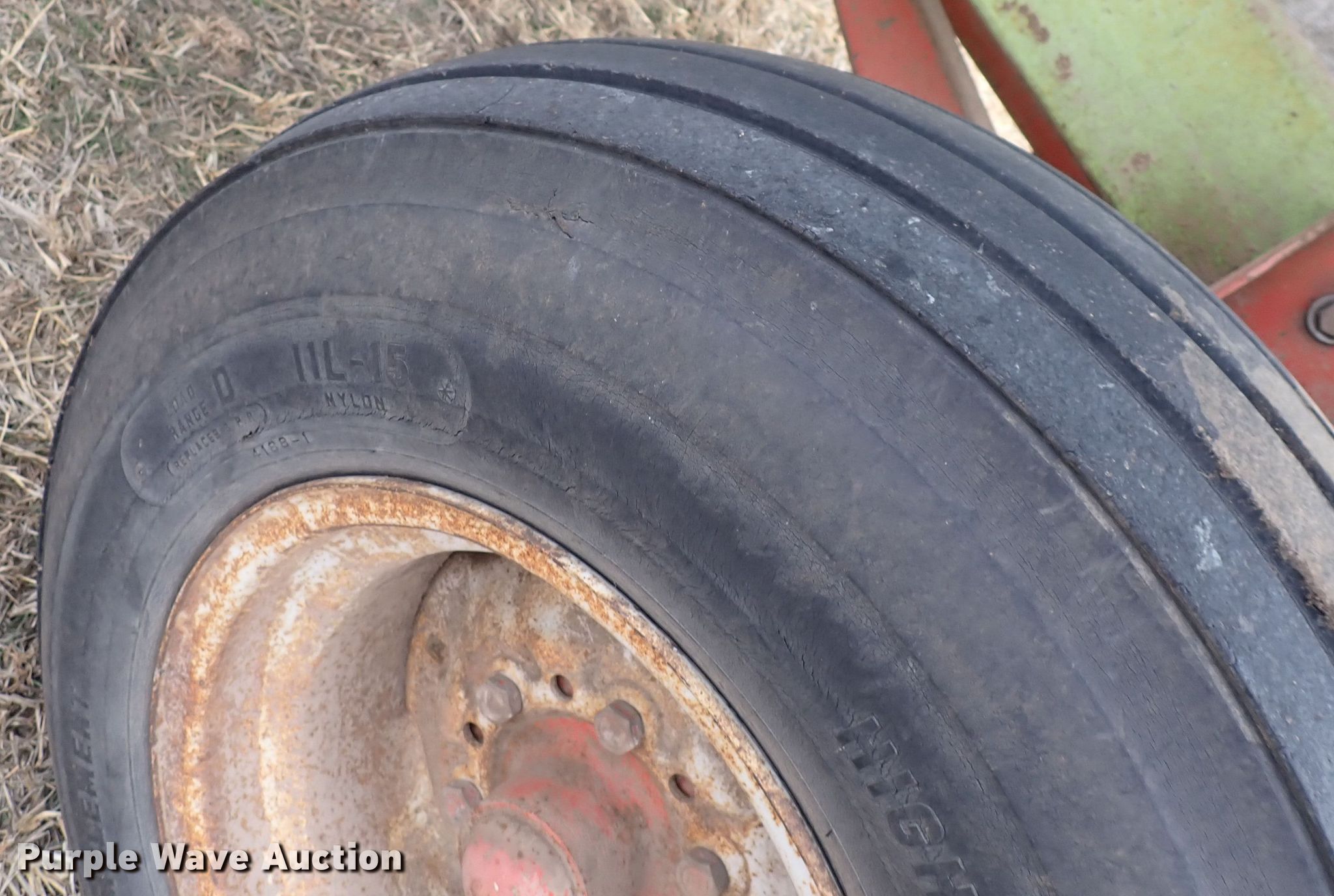 Parker gravity wagon. Features. Auger diameter: 6", Shut-off gate: Manual. Tires Size: 11L-15. Jim Stephens Estate. Inman, KS 67546