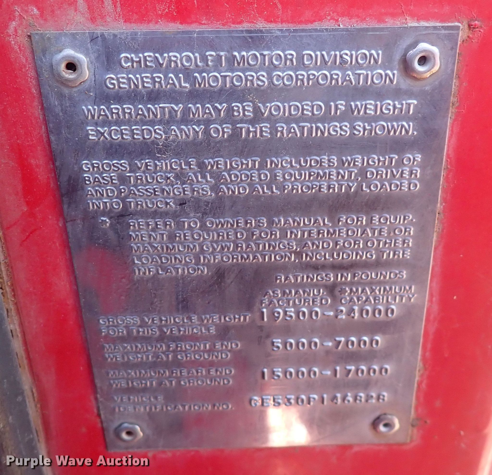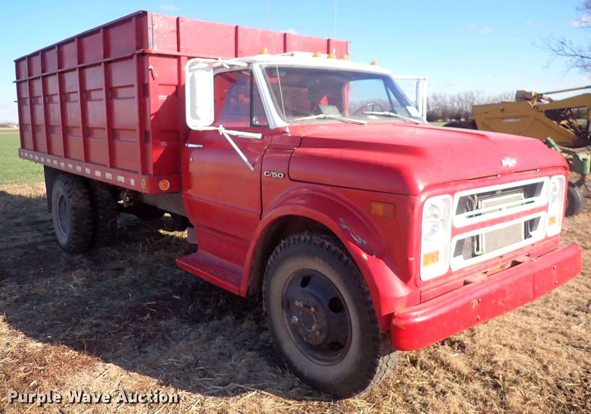 Purple Wave is selling a used Grain Truck in Kansas. This item is a 1970 Chevrolet C50 grain truck with the following: Miles: 76,768 on odometer, VIN: CE530P146828
