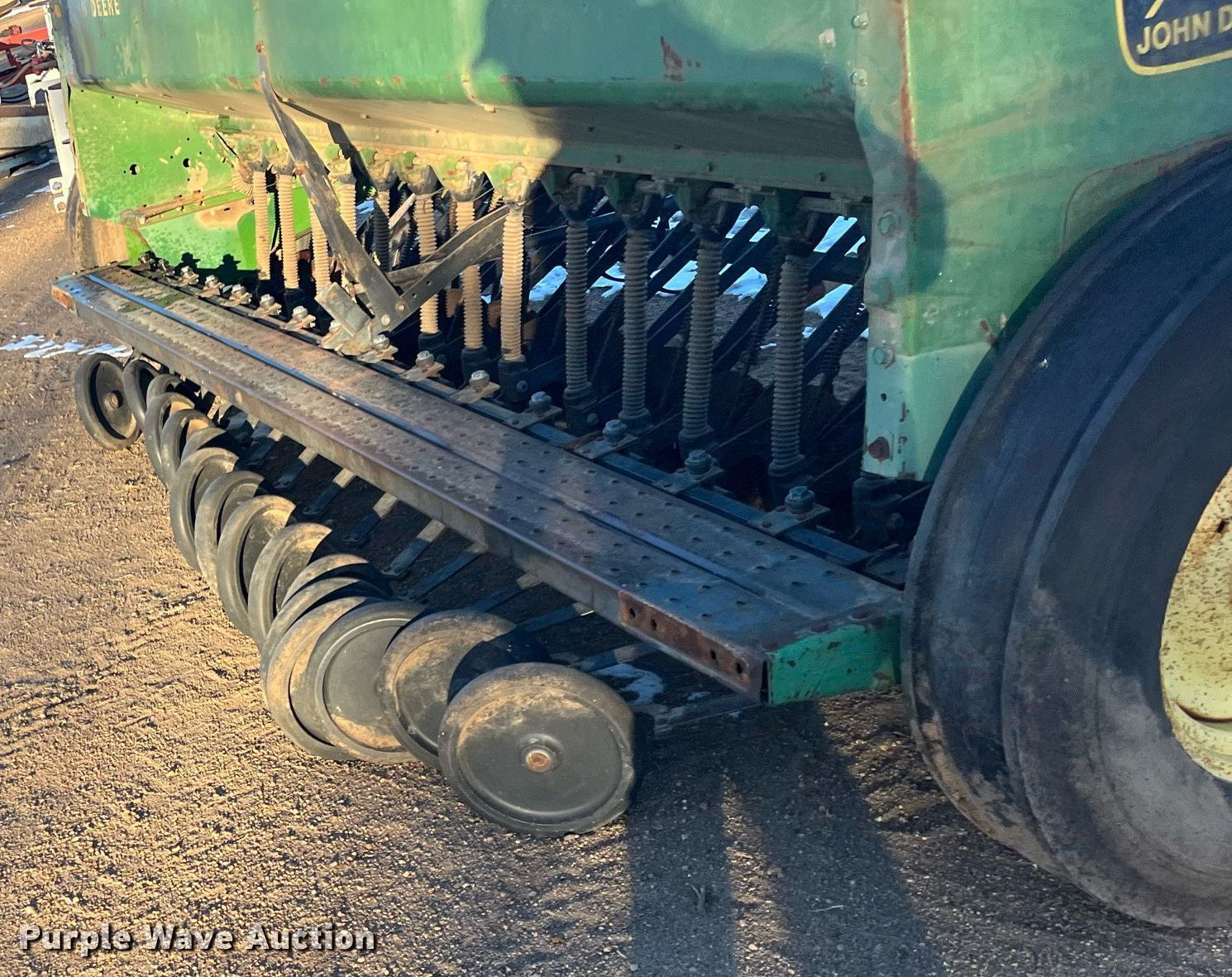 Purple Wave is selling a used Grain Drill or Seeder in Kansas. This item is a John Deere 8300 grain drill with the following: Width: 13', Row units: 16, Row spacing: 10"