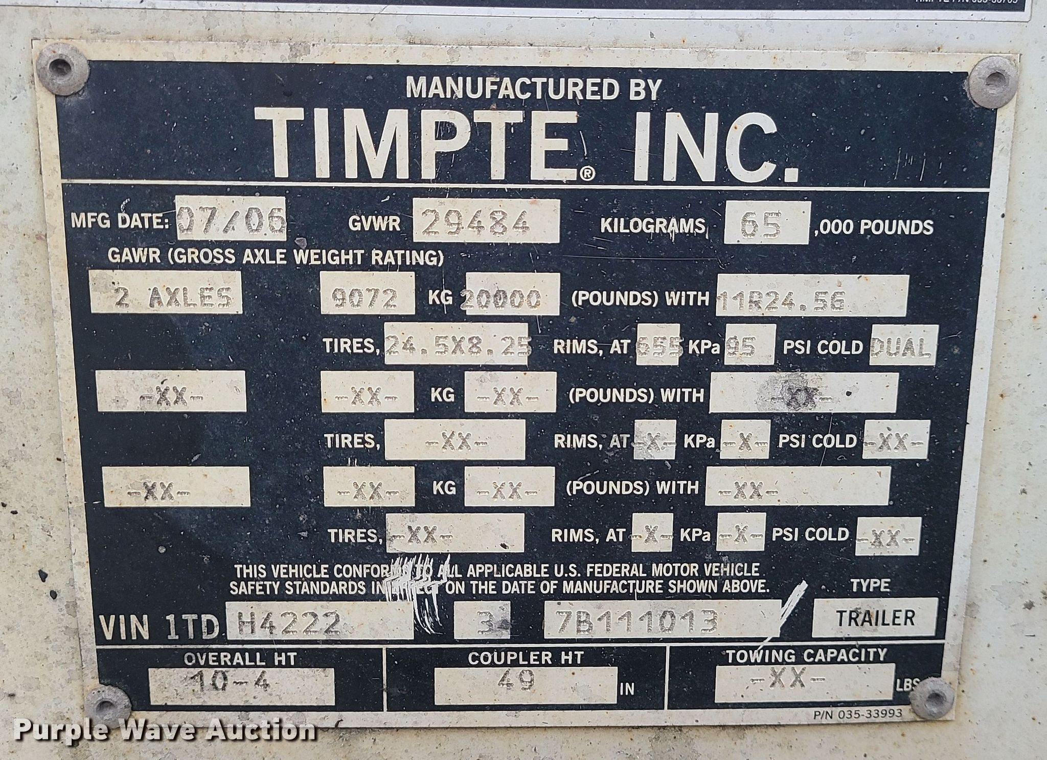 Purple Wave is selling a used Grain or Commodity Trailer in Missouri. This item is a 2007 Timpte grain trailer with the following: VIN: 1TDH422237B111013