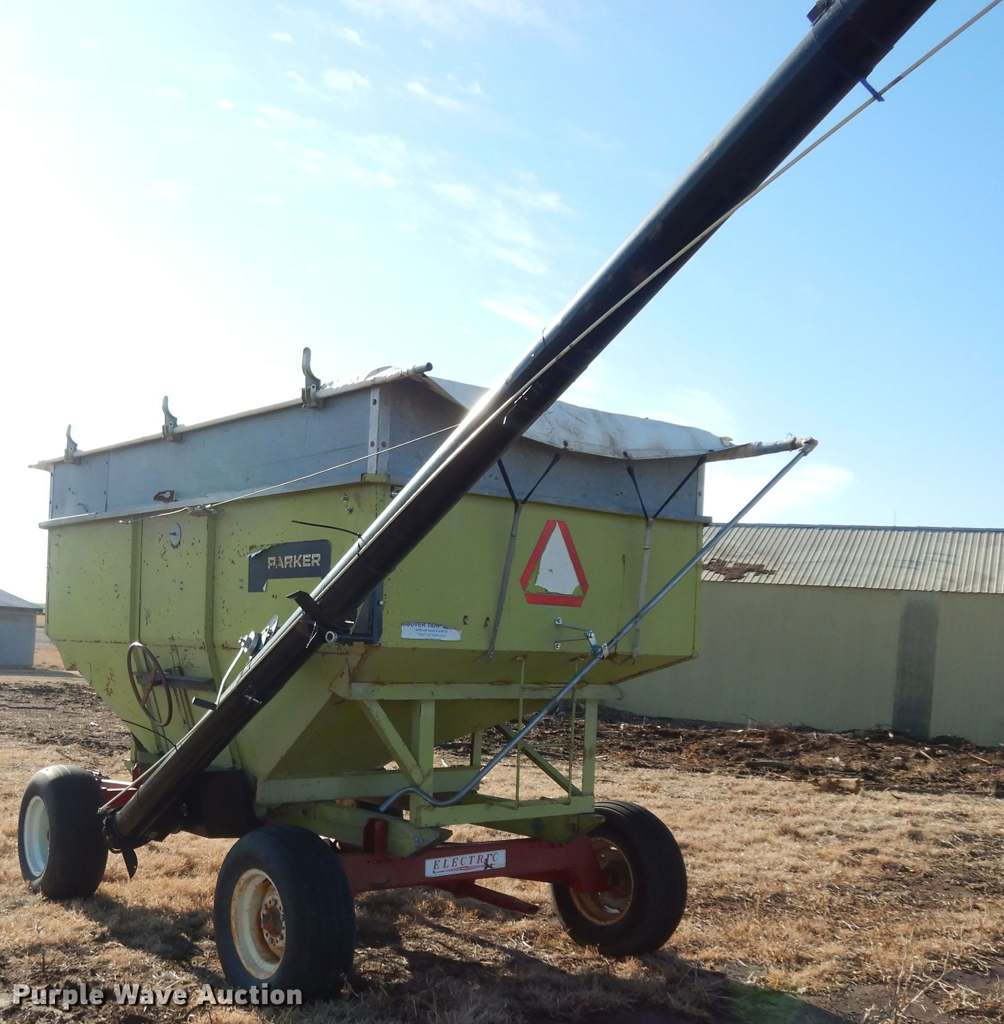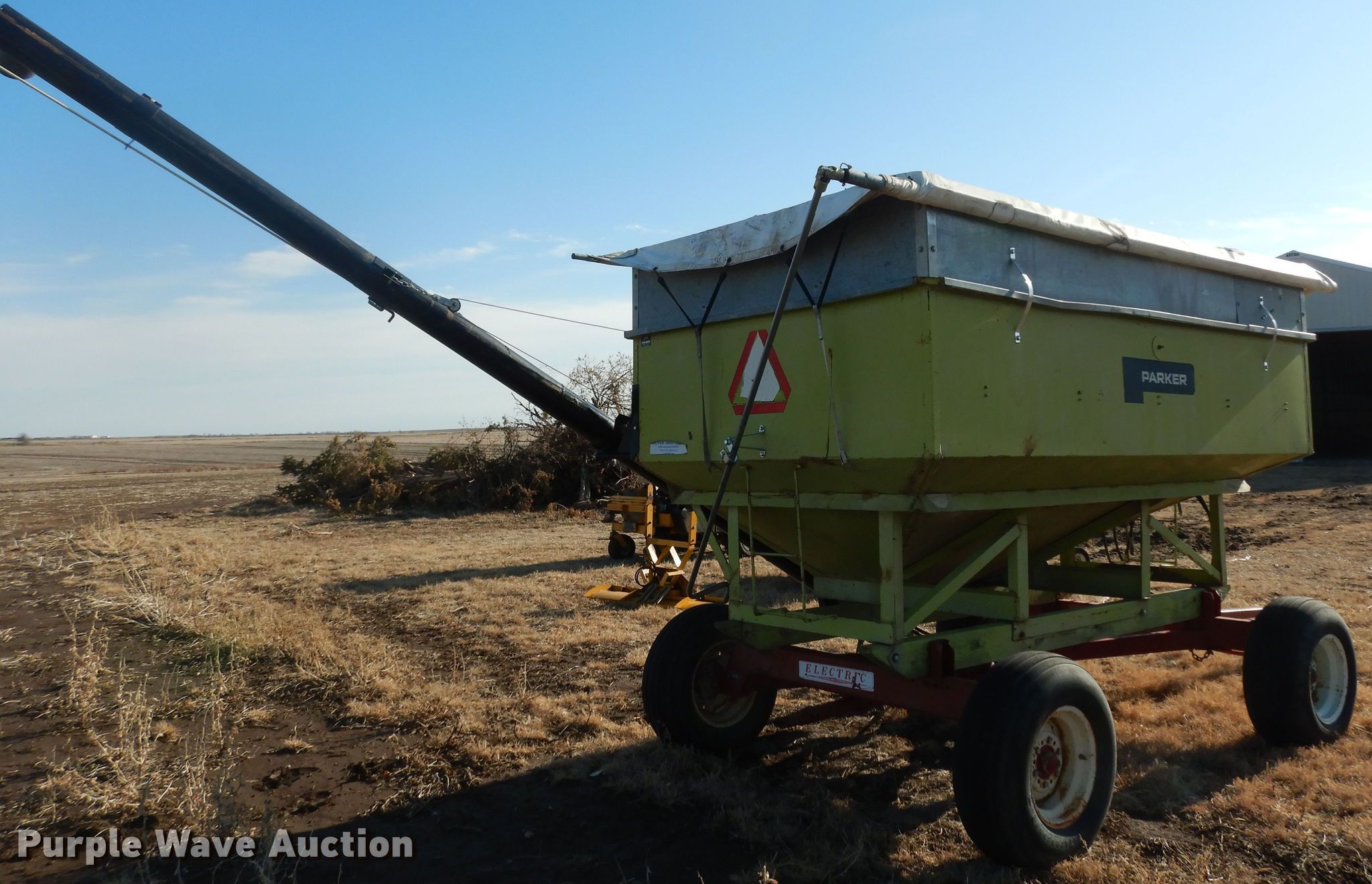Purple Wave is selling a used Grain Cart or Gravity Wagon in Kansas. This item is a Parker J2100 gravity wagon with the following: Serial: 7222717
