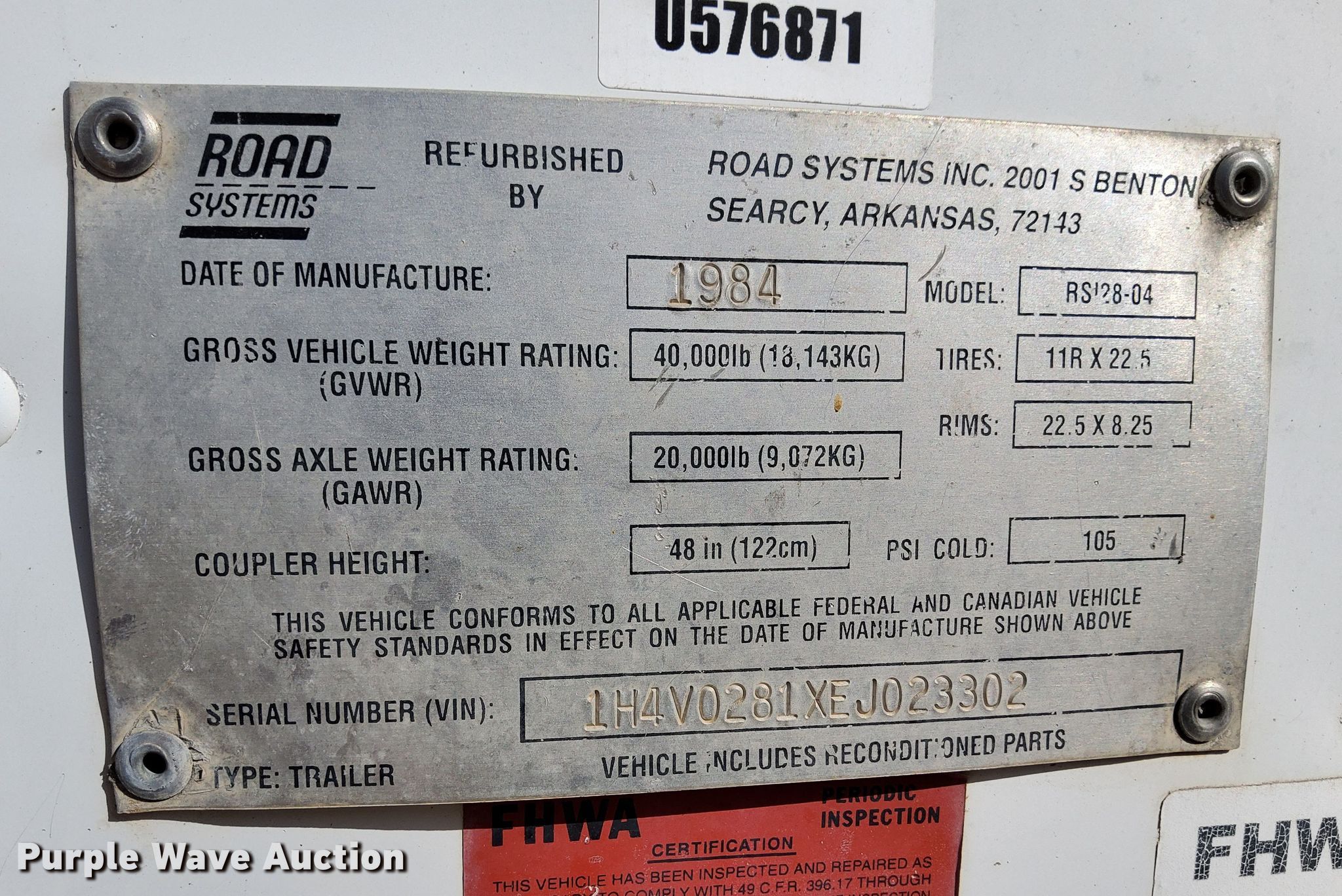 Purple Wave is selling a used Dry Van Trailer in Texas. This item is a 1984 Fruehauf Road Systems dry van trailer with the following: VIN: 1H4V0281XEJ023302