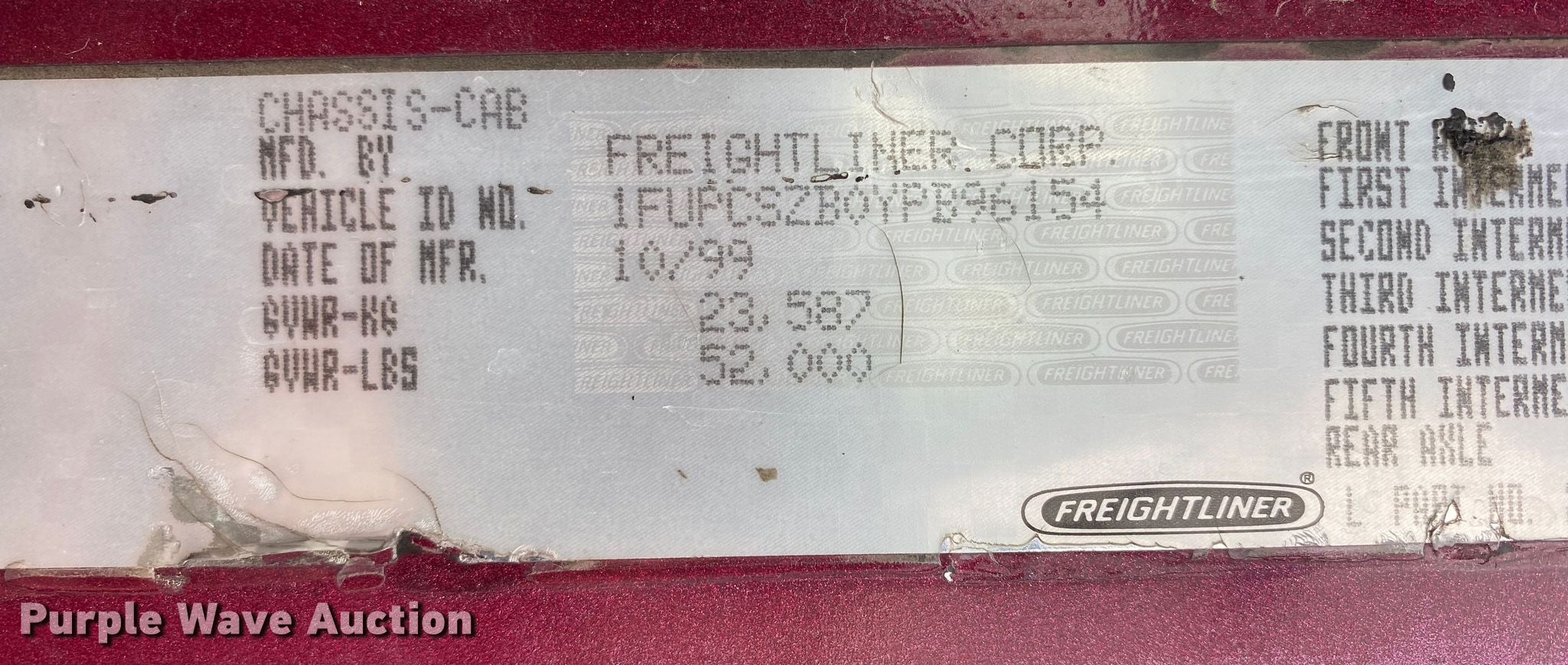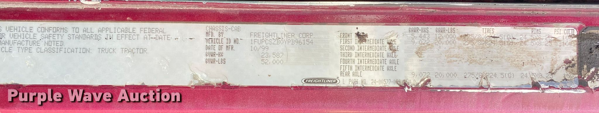 Purple Wave is selling a used Truck Tractor in Oklahoma. This item is a 2000 Freightliner FLD semi truck with the following: Miles: 842,956 on odometer, VIN: 1FUPCSZB0YPB96154