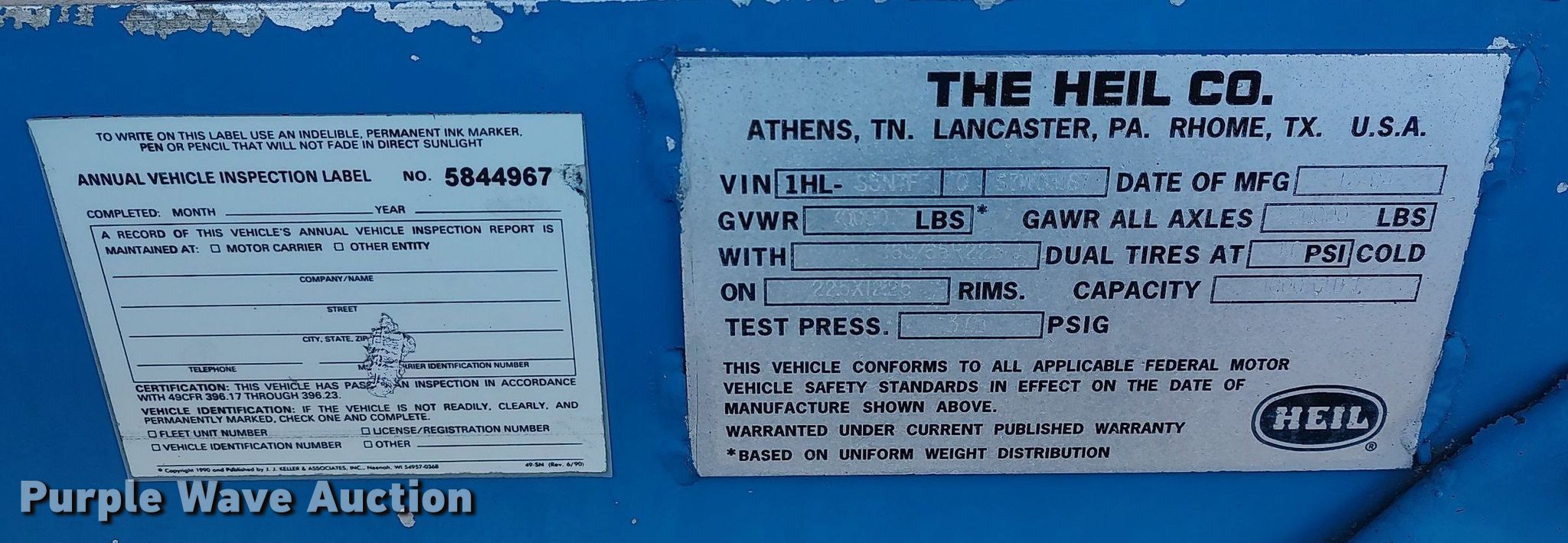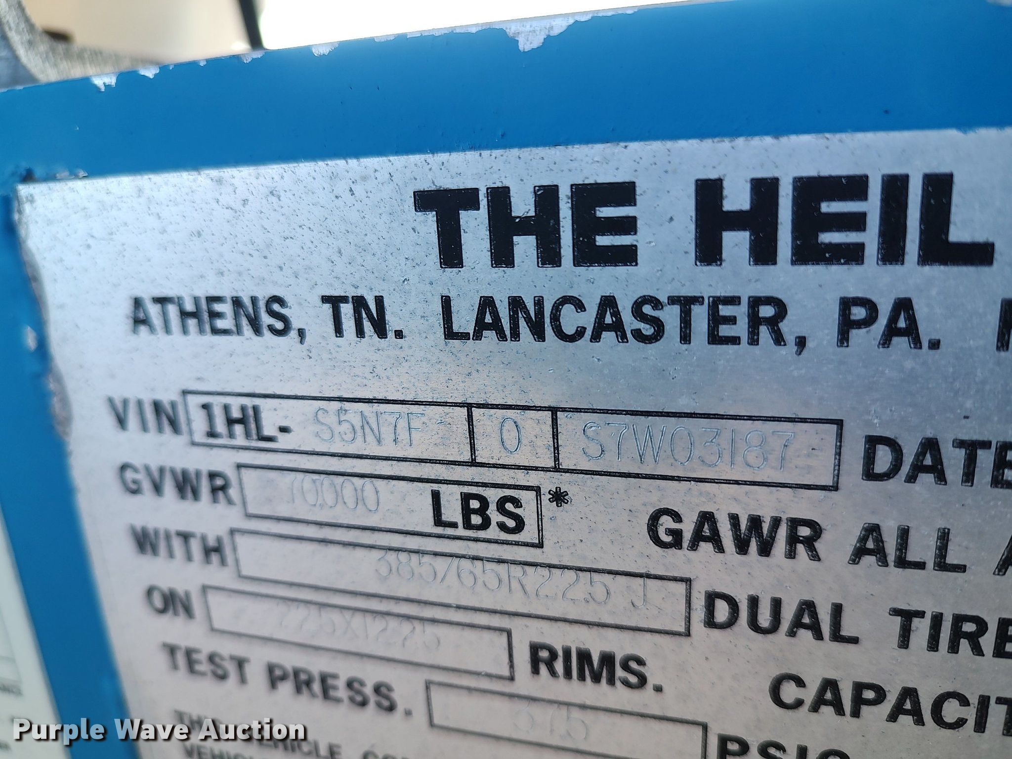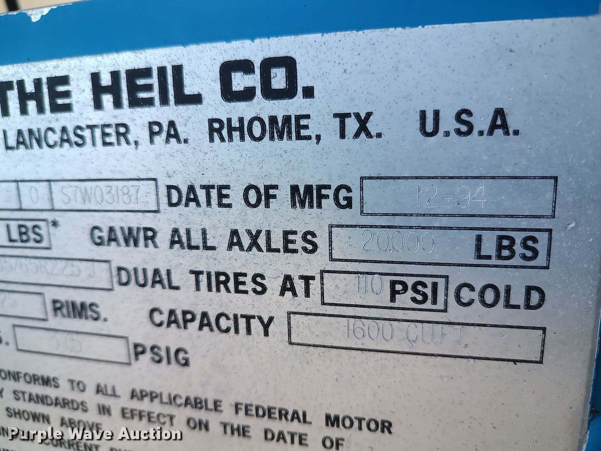 Purple Wave is selling a used Tank Trailer in Oklahoma. This item is a 1995 Heil pneumatic dry bulk trailer with the following: VIN: 1HLS5N7F0S7W03187