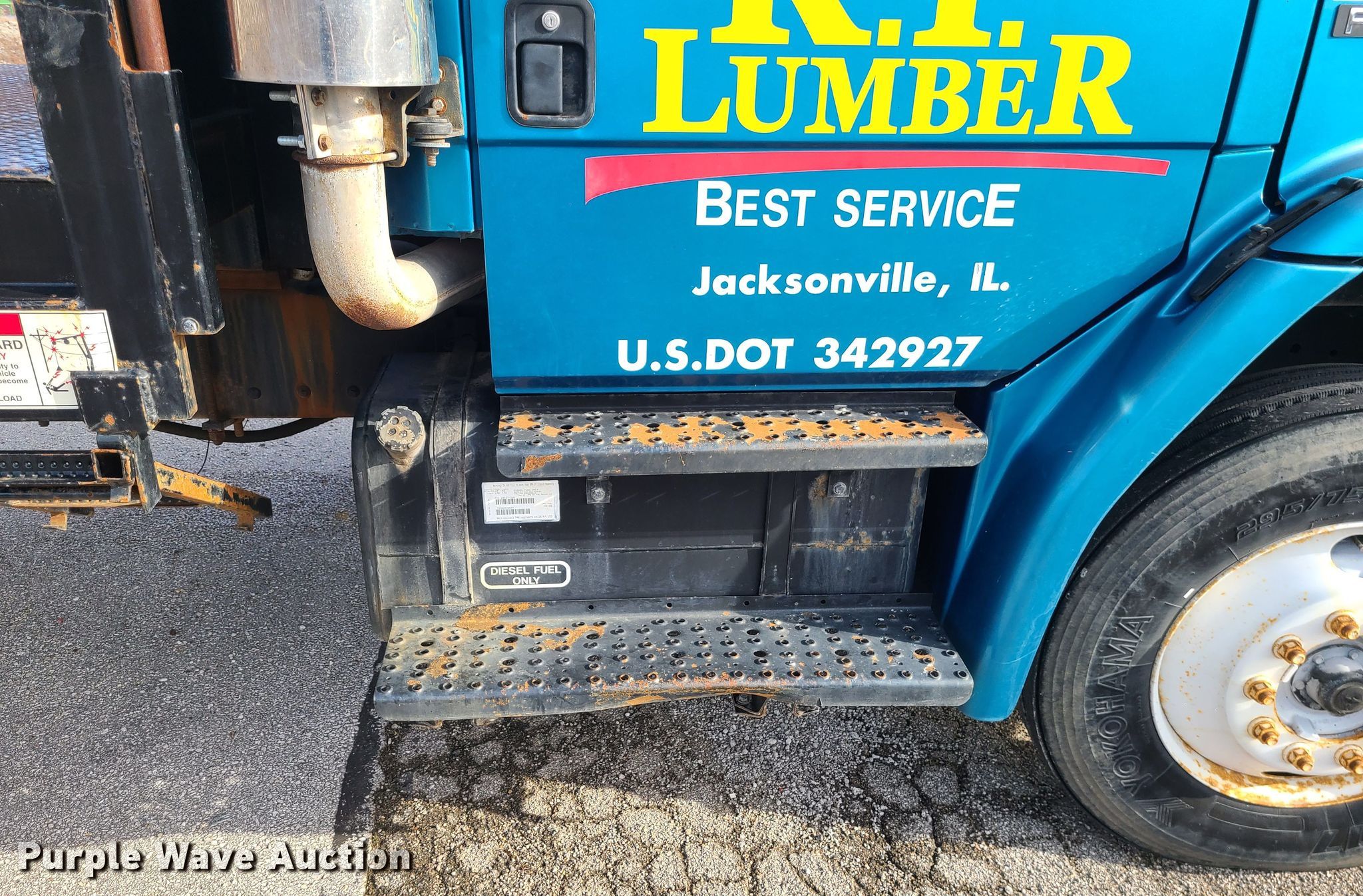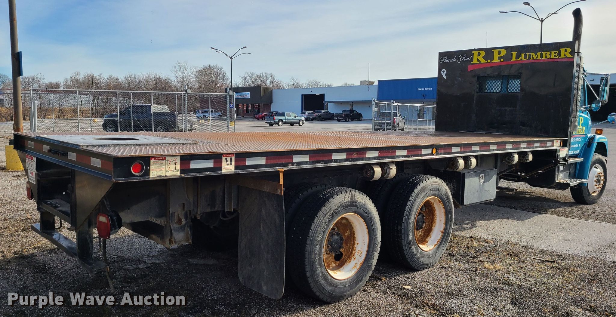 2004 Freightliner Business Class M2 flatbed truck. Miles: 122,289 on odometer, VIN: 1FVHBXCS54HM24496, Unit #: 2053. Engine Mercedes-Benz MBE 900, Displacement: 6.4L, Cylinders: 6, Fuel type: Diesel. Transmission Manual, Speed: 10. Chassis Axles: Tandem, Suspension: Spring over walking beam, Brakes: Air, GVWR: 54,000 lbs. Interior Heat. Features Flatbed 24' 6" L x 96" W. Tires Size: 295/75R22.5. Notes Dash warning indicator: Check engine. Missouri title. Title distribution may be delayed up to 14 days from verification of funds. R.P. Lumber Co., Inc.. Marshall, MO 65340