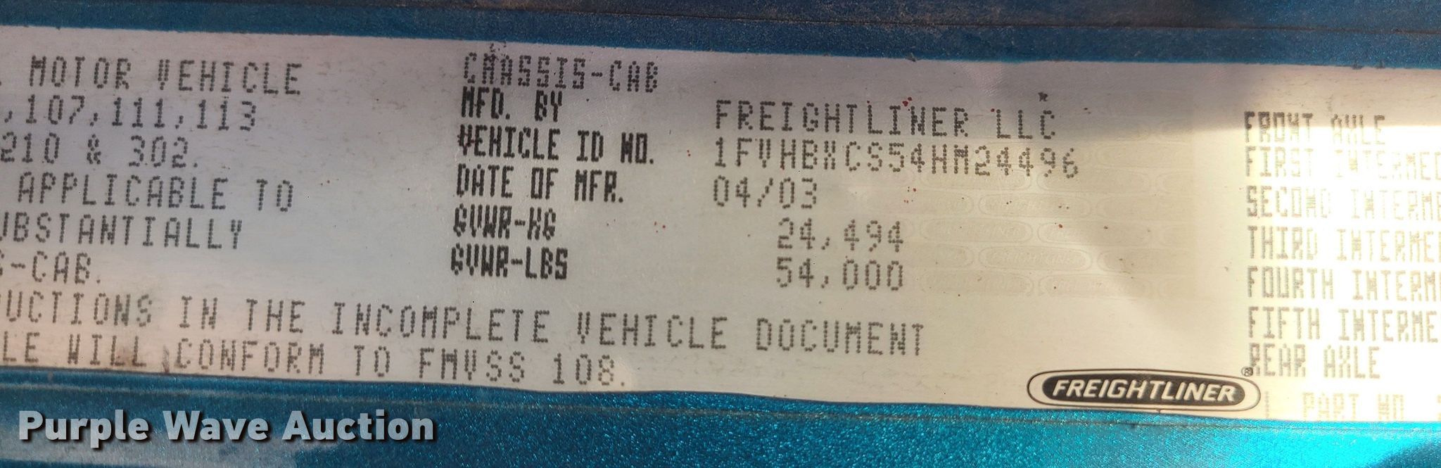 • VIN: 1FVHBXCS54HM24496