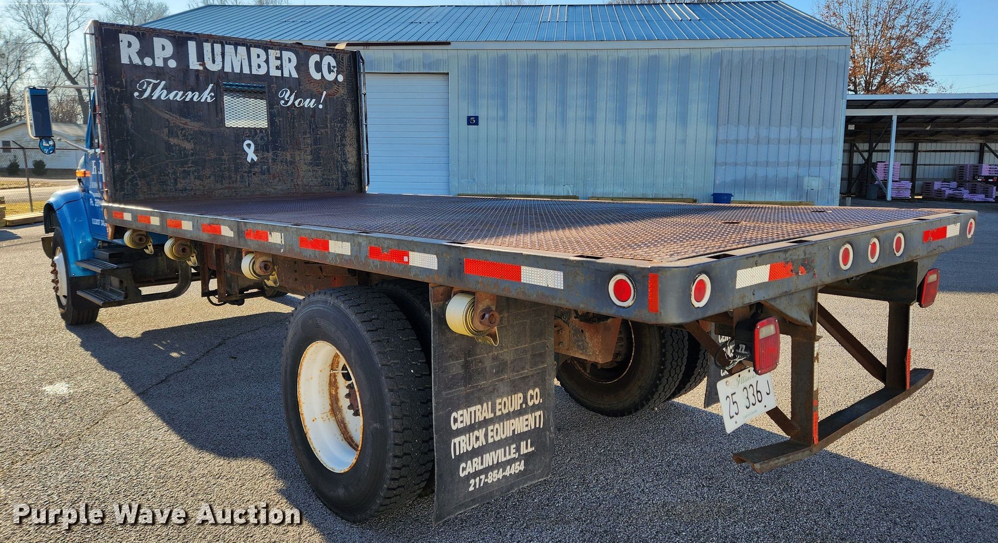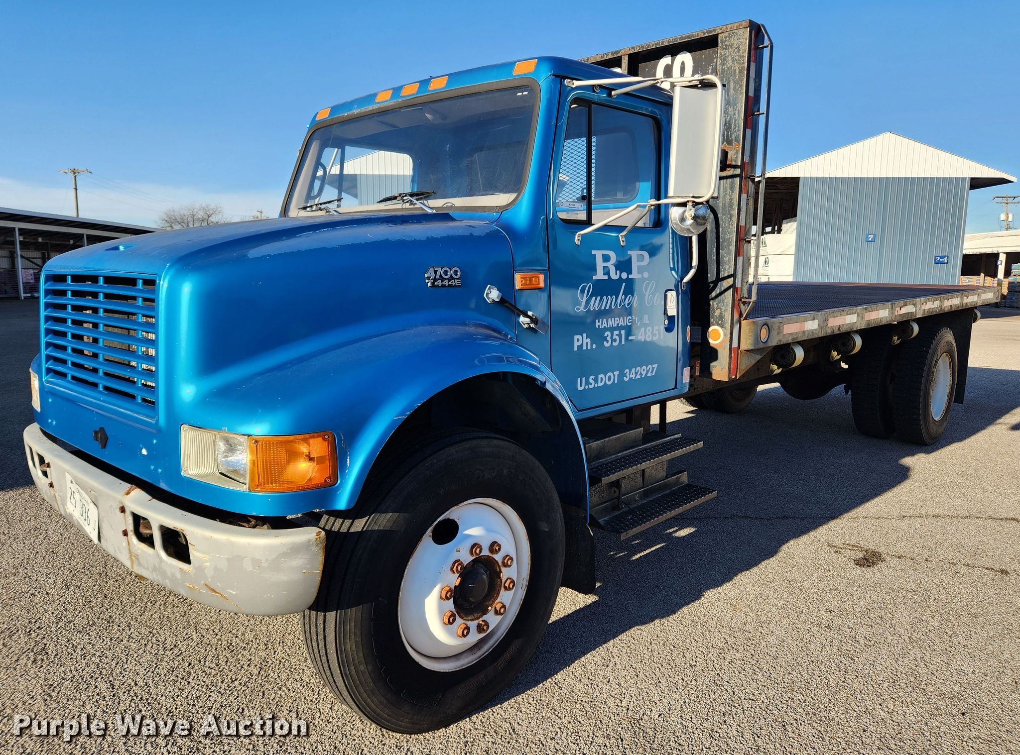 1998 International 4700 dump flatbed truck. Miles: 103,373 on odometer, VIN: 1HTSCABP9WH556028, Unit #: 2002. Engine International T444E, Displacement: 7.3L, Cylinders: 8, Fuel type: Diesel. Transmission Spicer, Manual, Speed: 5, plus 2. Chassis Axles: Single, Suspension: Spring, Brakes: Hydraulic, PTO, GVWR: 29,000 lbs, Wheelbase: 218". Interior Heat, Cruise control. Features Dump flatbed 18' L x 96" W, Ram: Single. Tires Size: 11R22.5. Notes Possible starter issues. Illinois title. Title distribution may be delayed up to 14 days from verification of funds. R.P. Lumber Co., Inc.. Lebanon, IL 62254