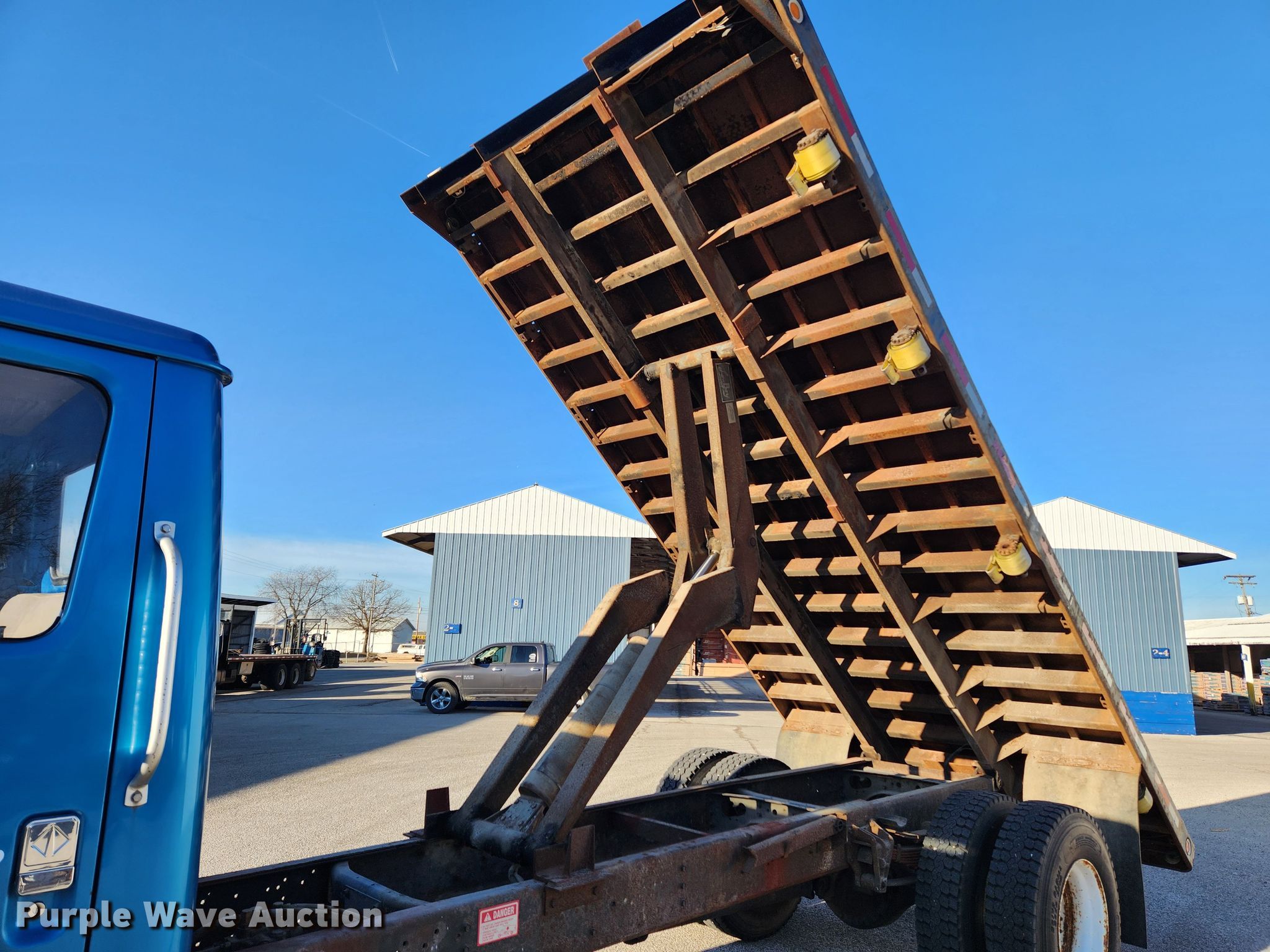 This 1998 International 4700 dump flatbed truck will sell to the highest bidder regardless of price.