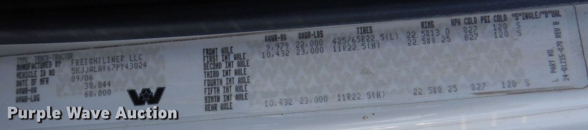 Purple Wave is selling a used Truck Tractor in Iowa. This item is a 2007 Western Star 4900 semi truck with the following: Miles: 398,156 on odometer, Hours: 12,632 on meter, VIN: 5KJJALAV67PY43024
