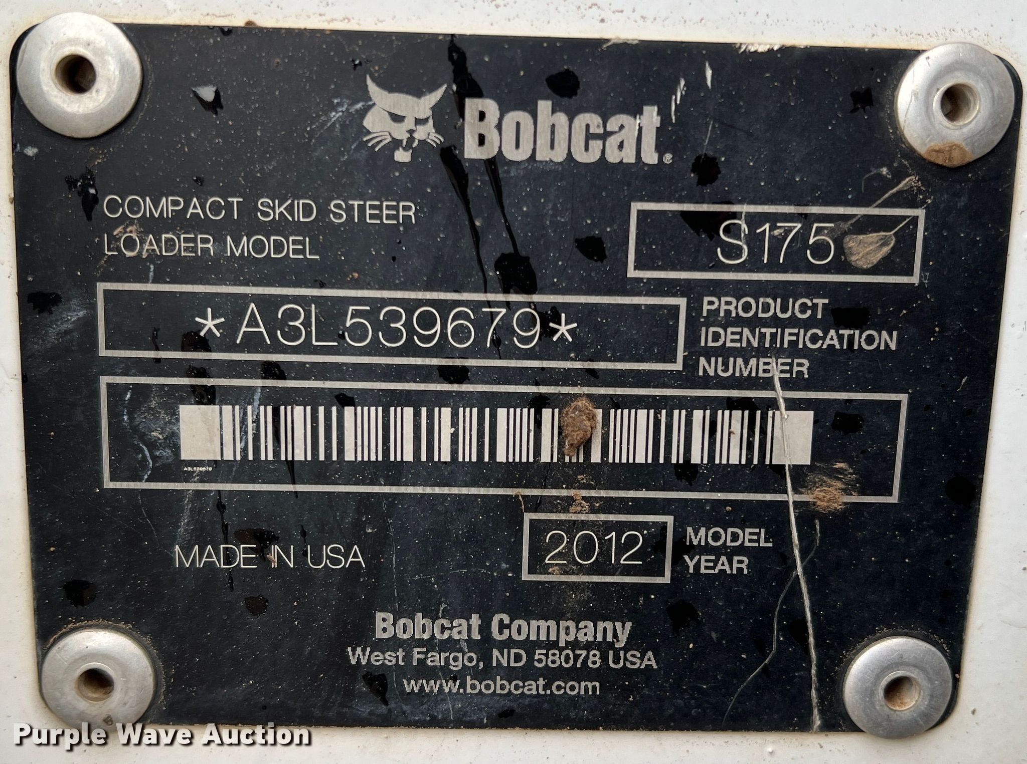Purple Wave is selling a used Skid Steer Loader in Texas. This item is a 2012 Bobcat S175 skid steer loader with the following: Hours: 3,466 on meter, Serial: A3L539679
