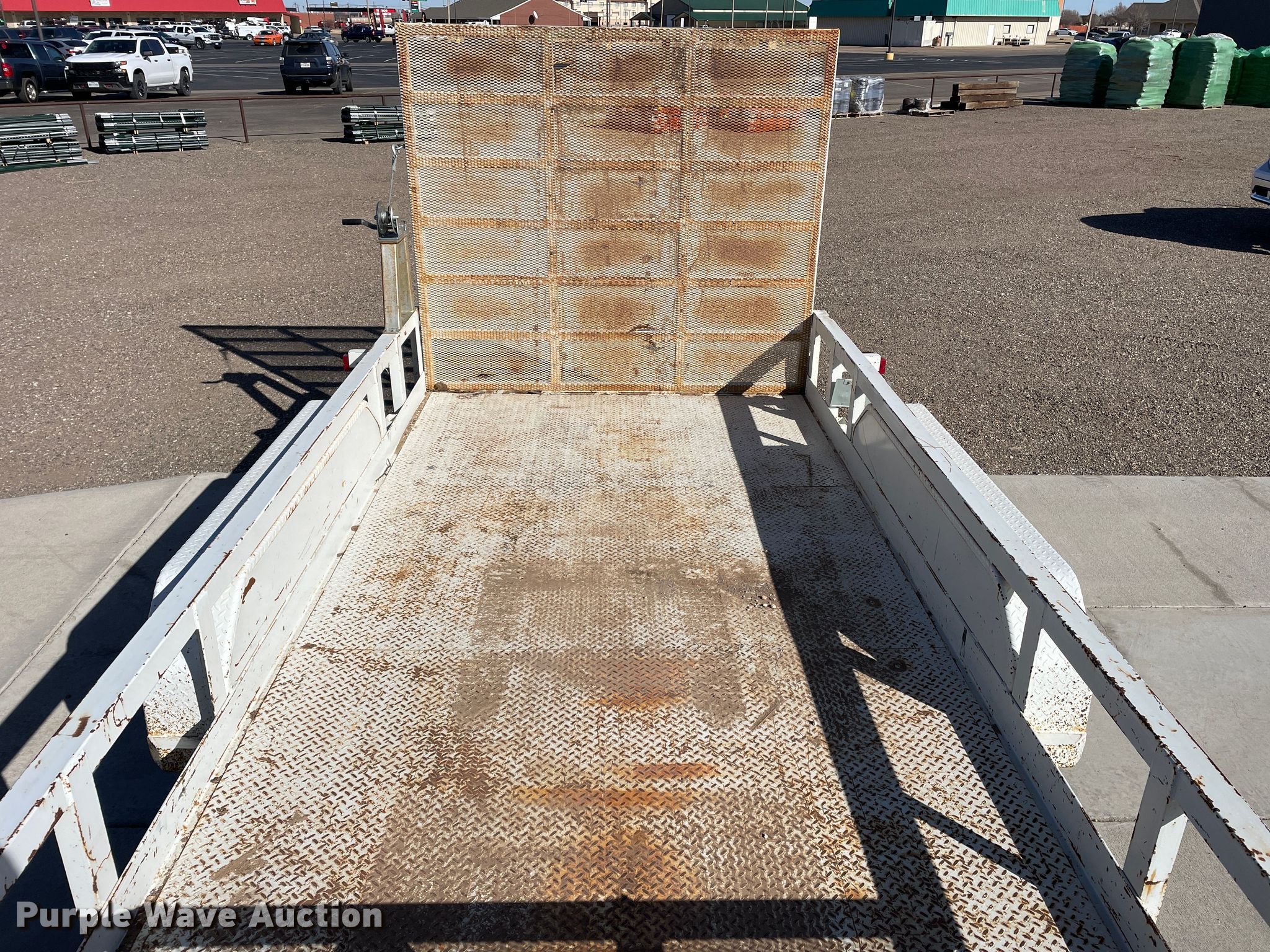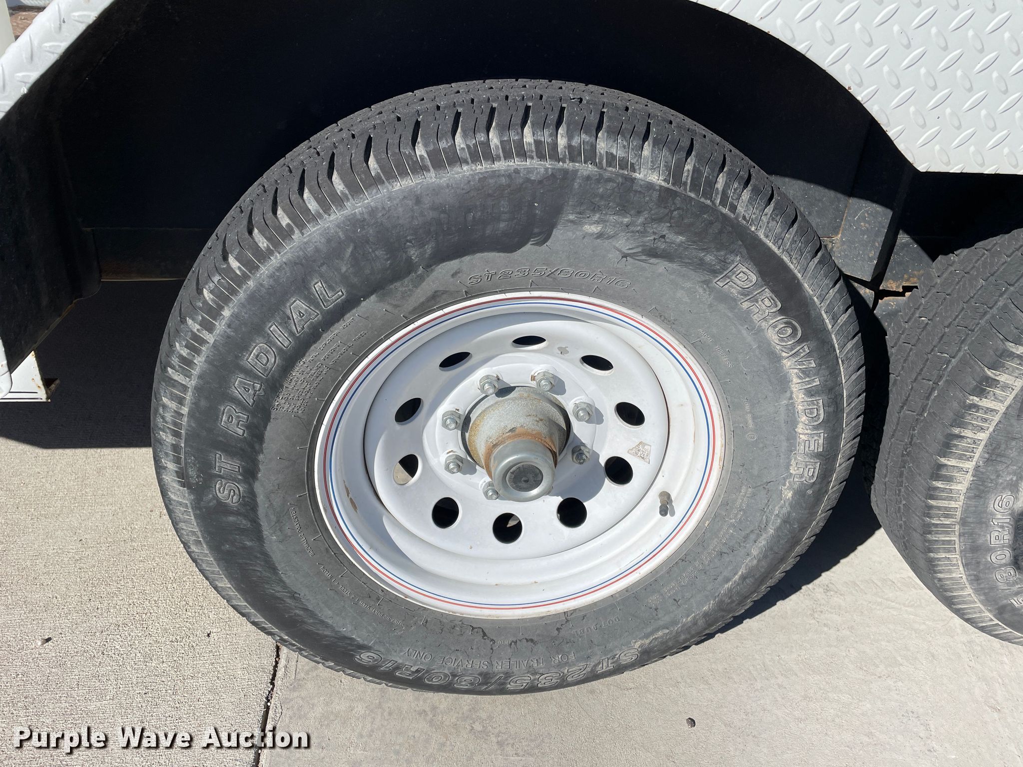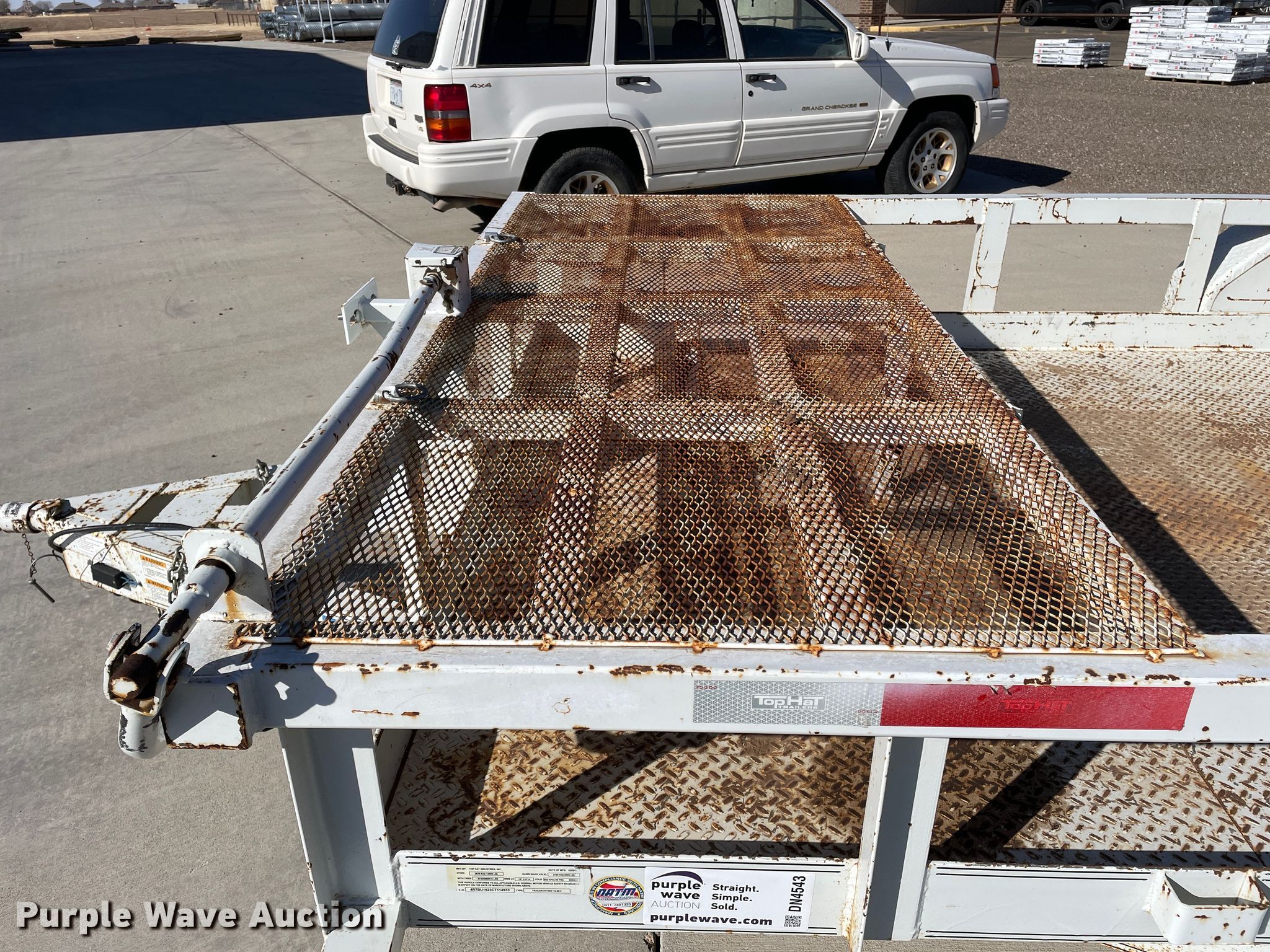 2012 Top Hat utility trailer. VIN: 4R7BU1623CT114933. Dimensions Overall: 20' L x 102" W, Deck: 16' L x 82" W, Deck height: 20", Ramp gate: Manual Length: 6', Side ramp length: 5'. Features Deck type: Steel. Chassis Ball hitch: 2 5/16", Landing gear: Single, Suspension: Spring, Brakes: Electric, Axles: Tandem, GVWR: 12,500 lbs, GAWR: 6,000 lbs. Tires Steel wheels, Size: 235/80R16. Texas title. Title distribution may be delayed up to 14 days from verification of funds. Bartlett's Lumber & Hardware. 2910 South Main Street. Perryton, TX 79070
