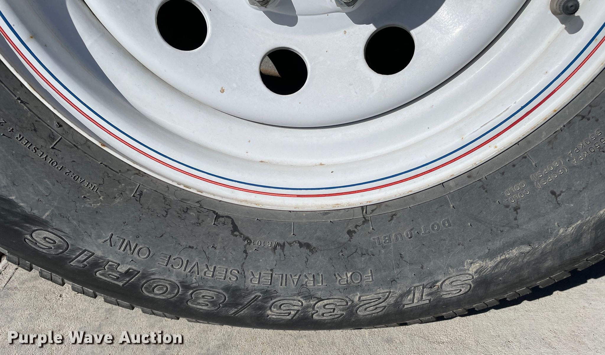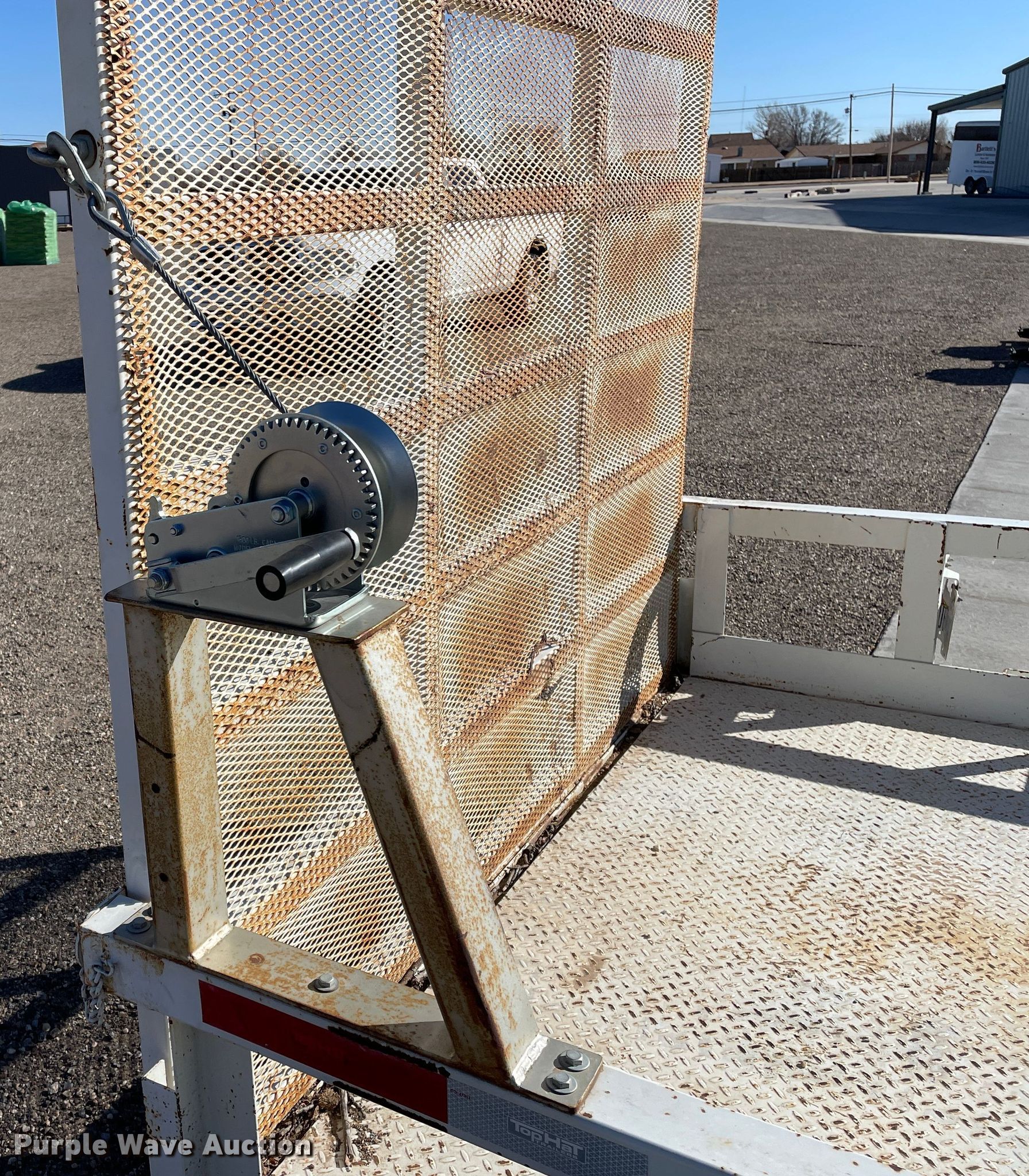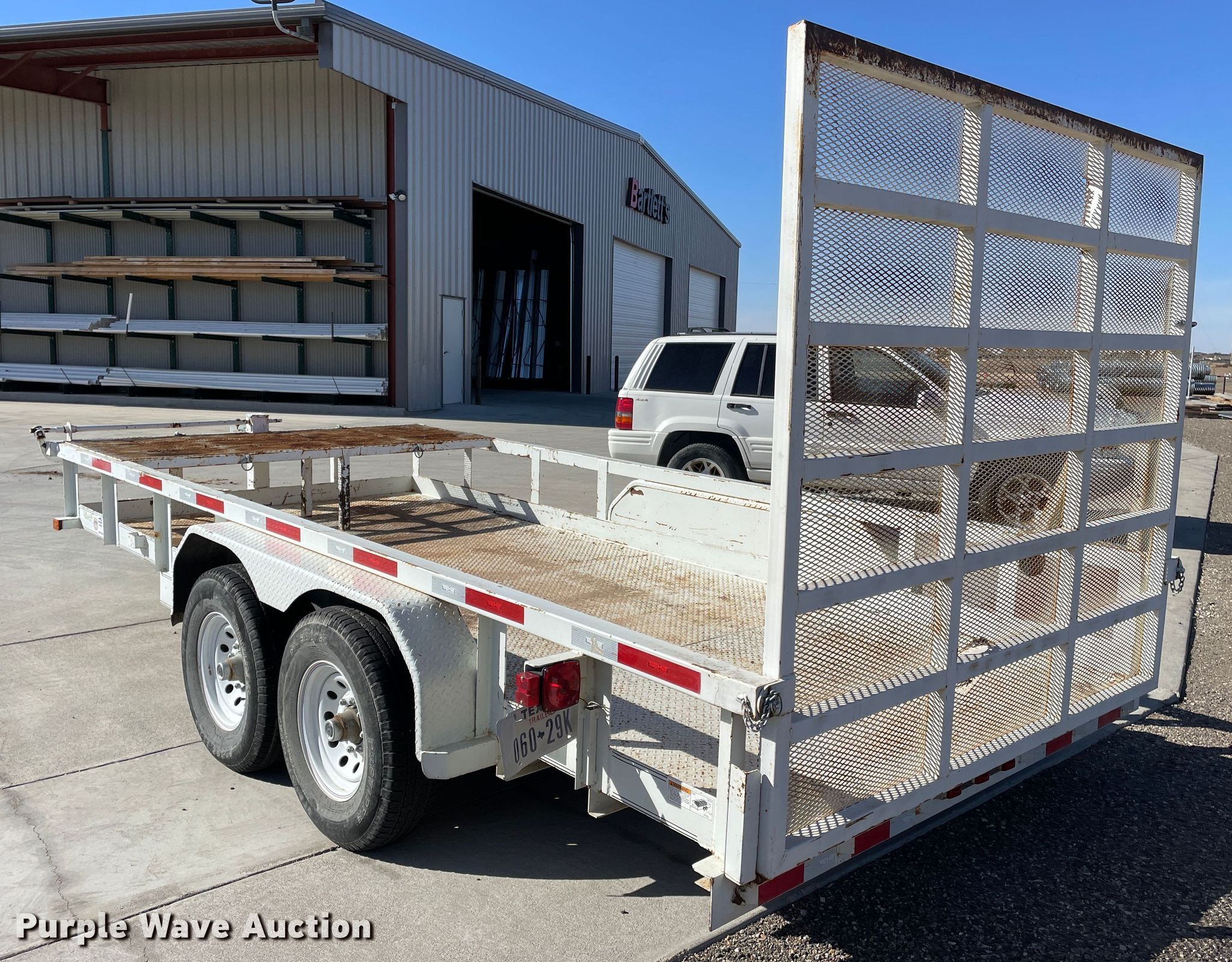 2012 Top Hat utility trailer. VIN: 4R7BU1623CT114933. Dimensions Overall: 20' L x 102" W, Deck: 16' L x 82" W, Deck height: 20", Ramp gate: Manual Length: 6', Side ramp length: 5'. Features Deck type: Steel. Chassis Ball hitch: 2 5/16", Landing gear: Single, Suspension: Spring, Brakes: Electric, Axles: Tandem, GVWR: 12,500 lbs, GAWR: 6,000 lbs. Tires Steel wheels, Size: 235/80R16. Texas title. Title distribution may be delayed up to 14 days from verification of funds. Bartlett's Lumber & Hardware. 2910 South Main Street. Perryton, TX 79070