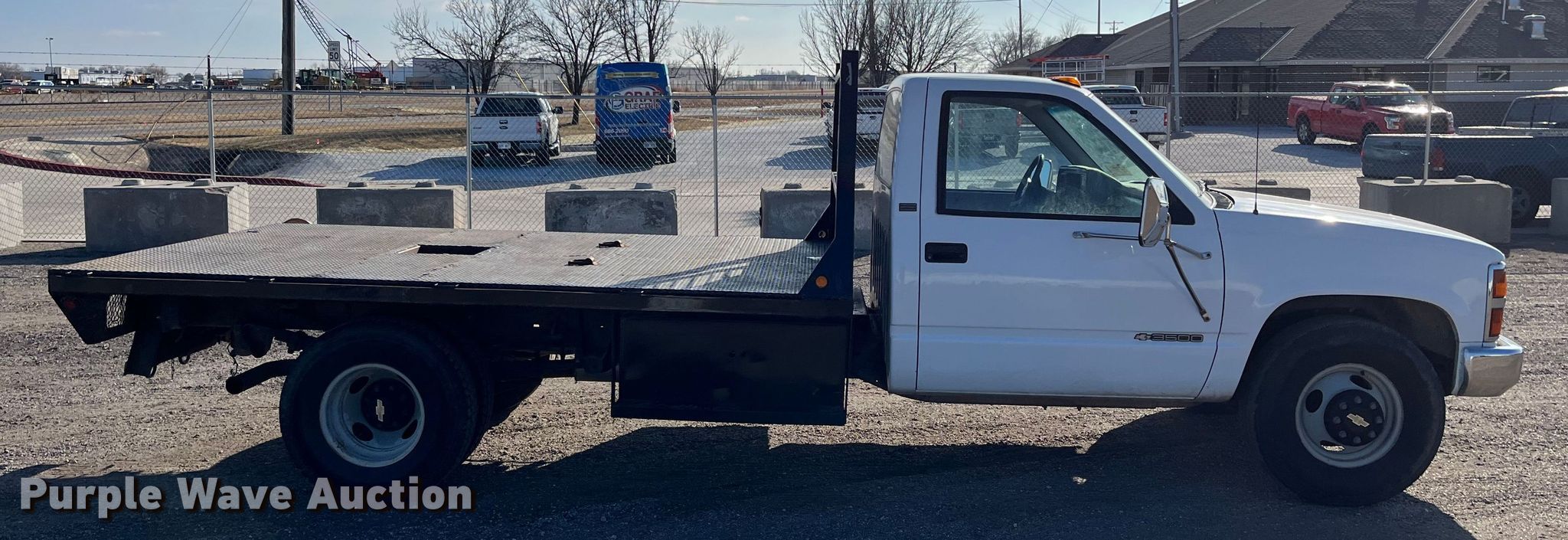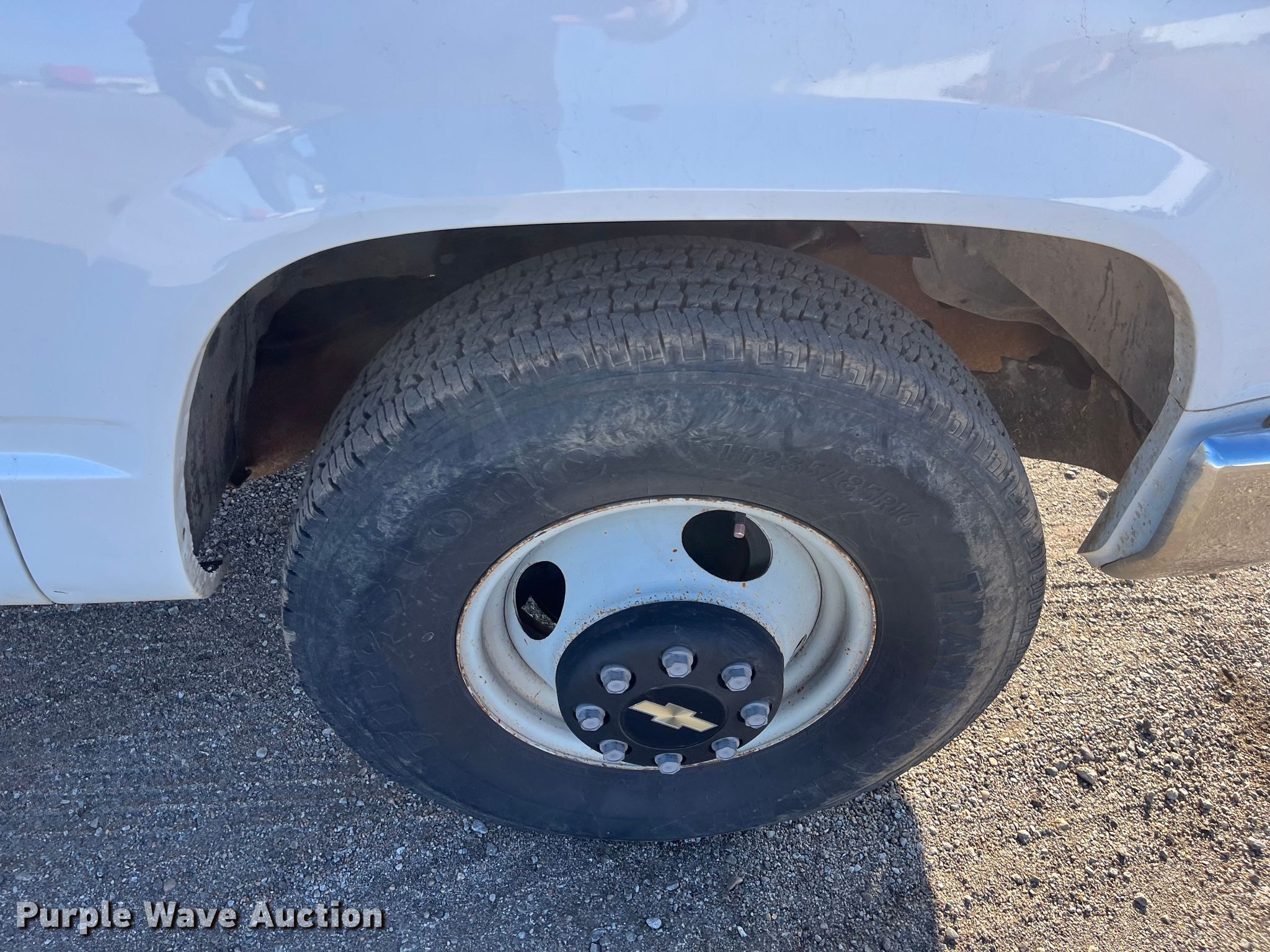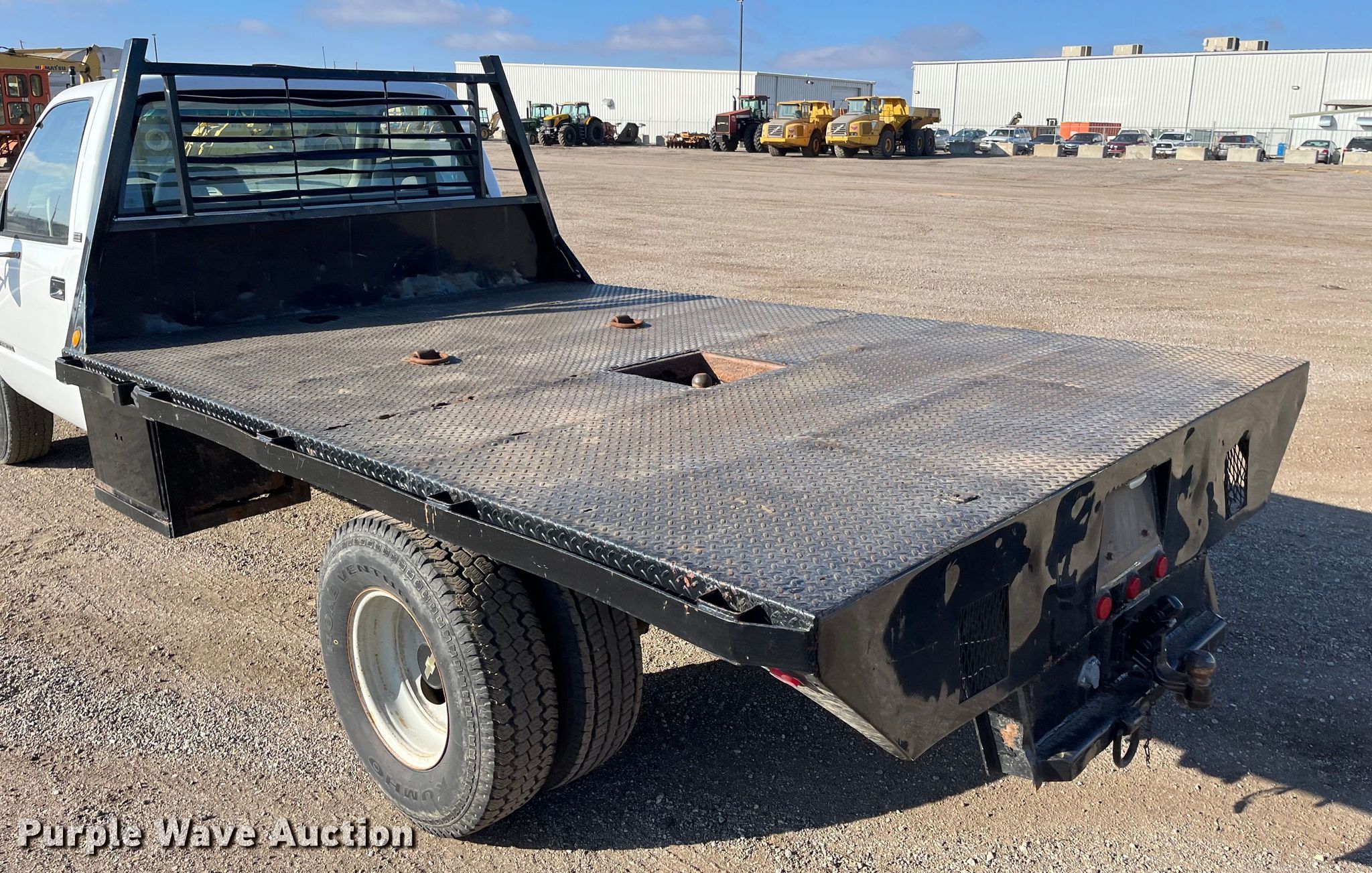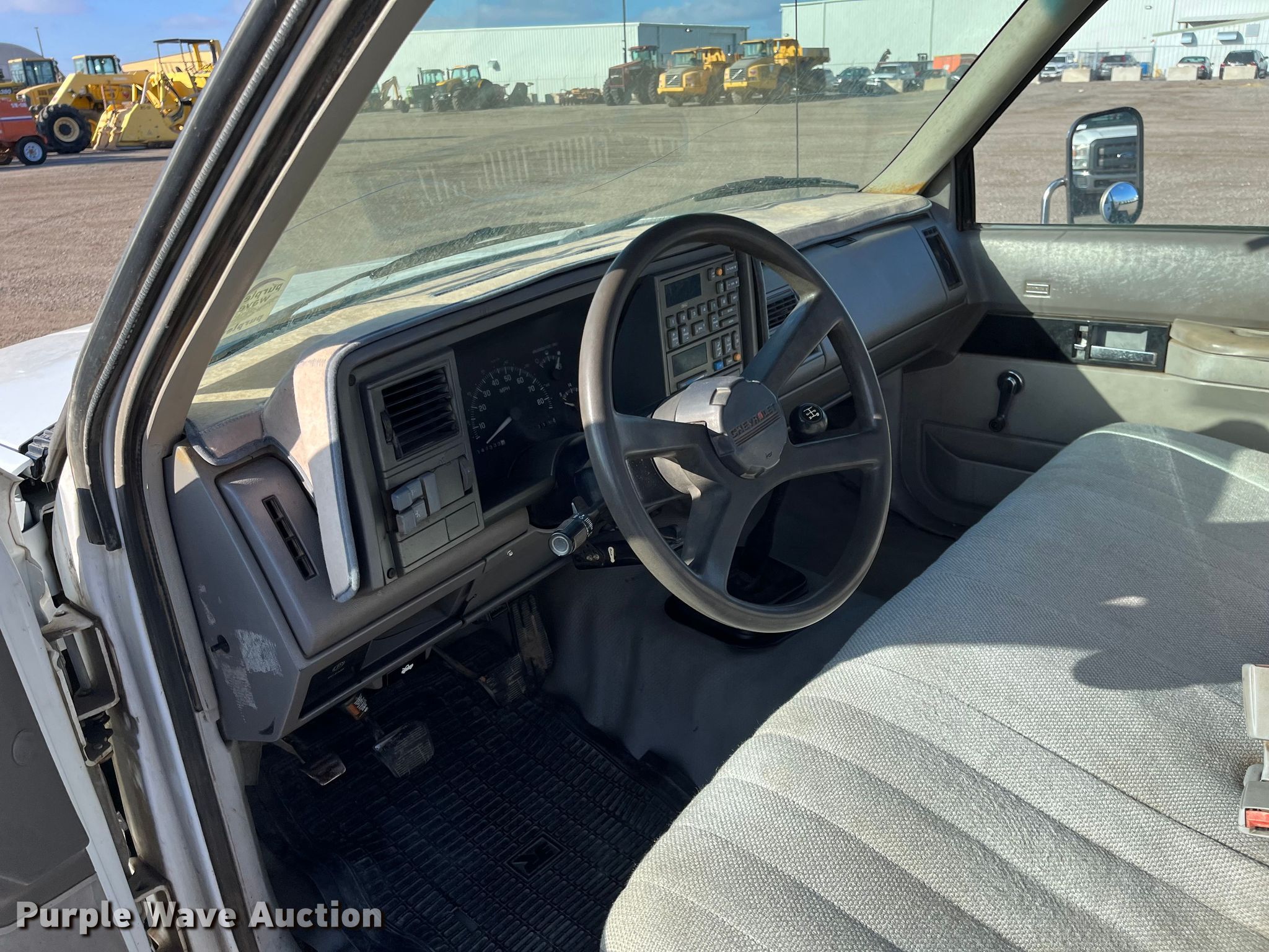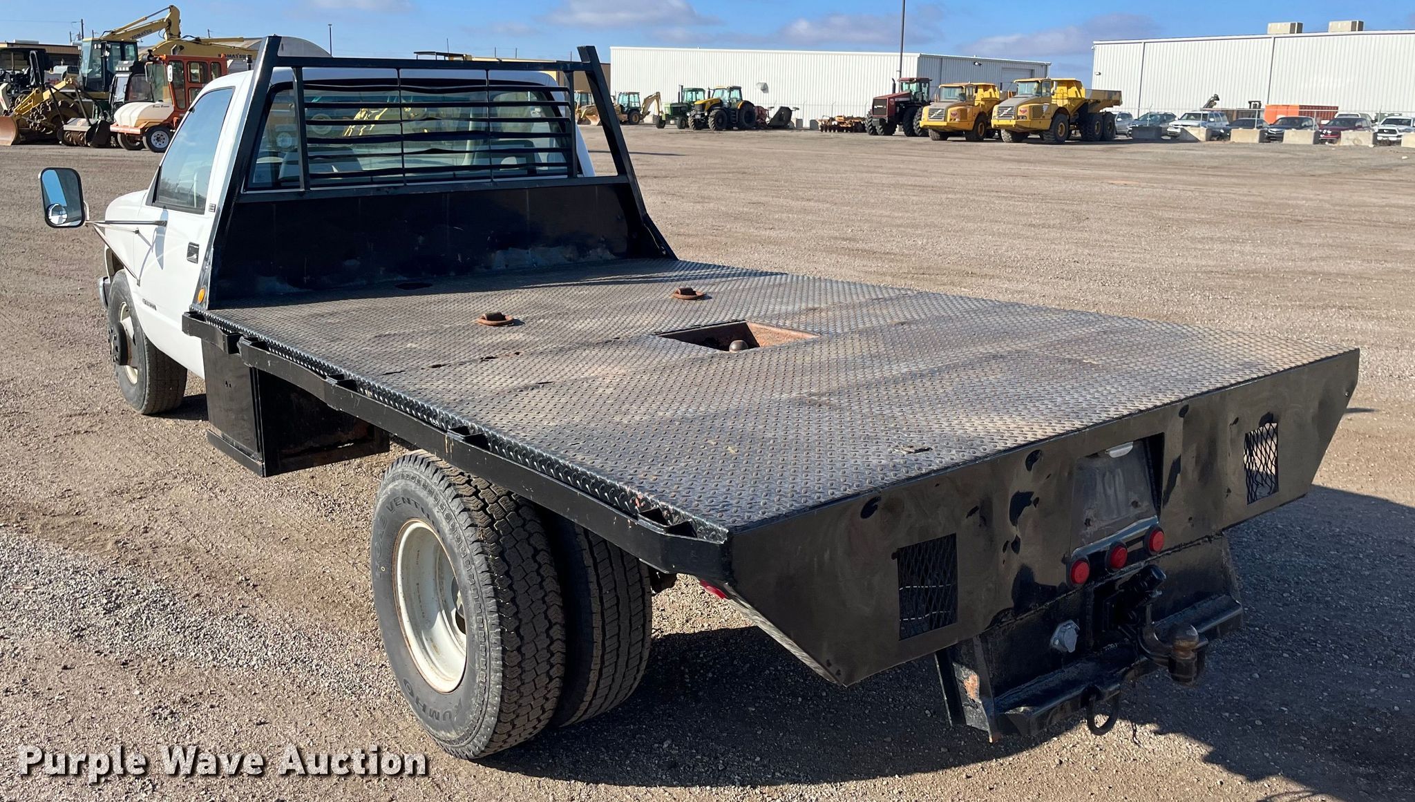 1992 Chevrolet C3500 flatbed pickup truck. Miles: 147,333 on odometer, VIN: 1GBJC34K2NE223504. Engine Displacement: 5.7L V8 OHV, Cylinders: 8, Fuel type: Gas. Transmission Manual, Speed: 5. Interior AC, Heat. Features Flatbed 10' 6" L x 86" W, Hitch: Gooseneck. Tires Size: 235/85R16. Notes Windshield chipped or cracked. Kansas title. Mies Construction. 1919 Southwest Boulevard. Wichita, KS 67213