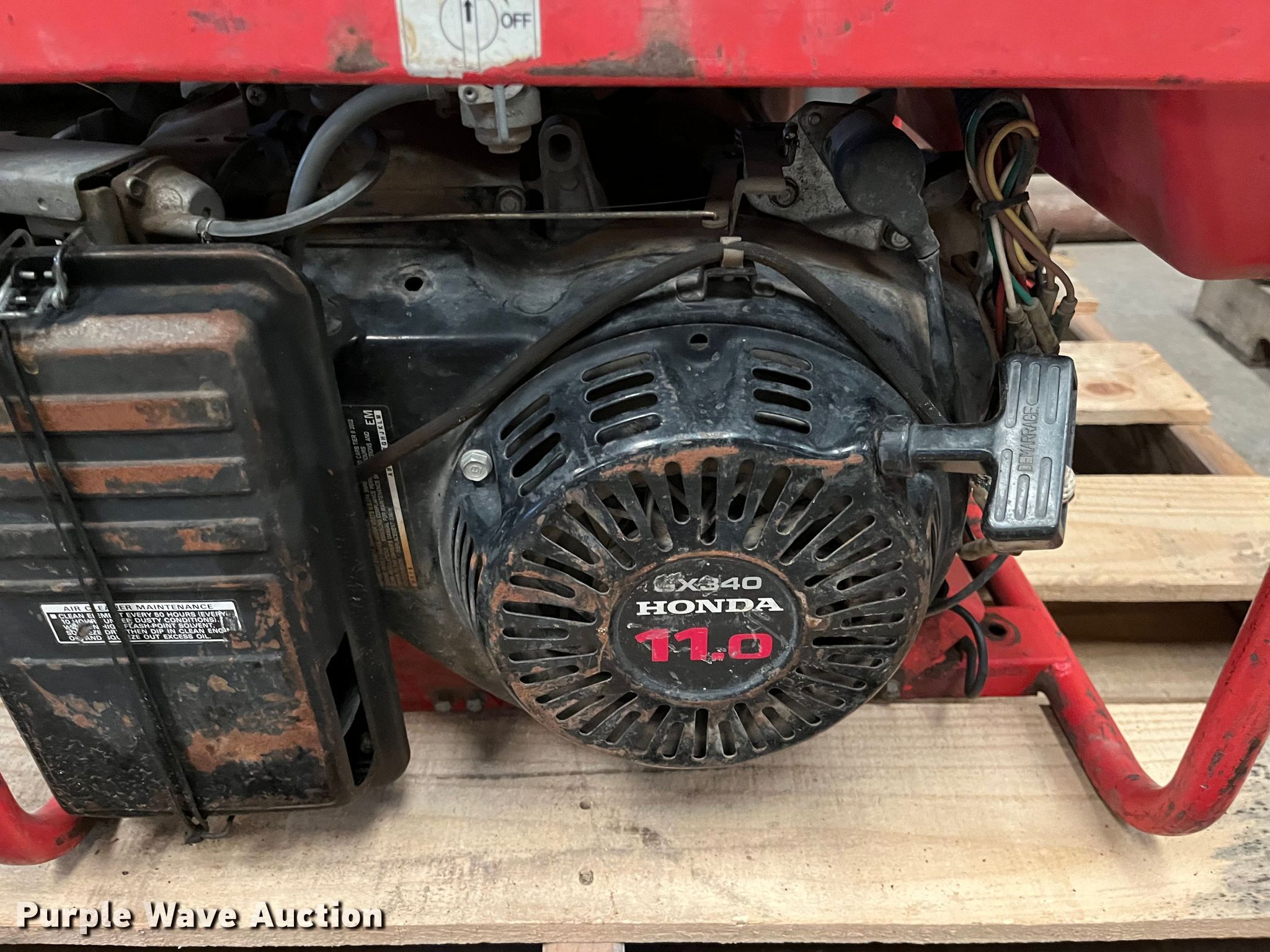 Multiquip GA-6HEA generator. Serial: 6541640. Engine Honda GX40, Fuel type: Gas, HP: 11. Features Generator Watts: 6,000, Phase: Single, Electric start. Duling Construction. 4200 S West St. Wichita, KS 67217