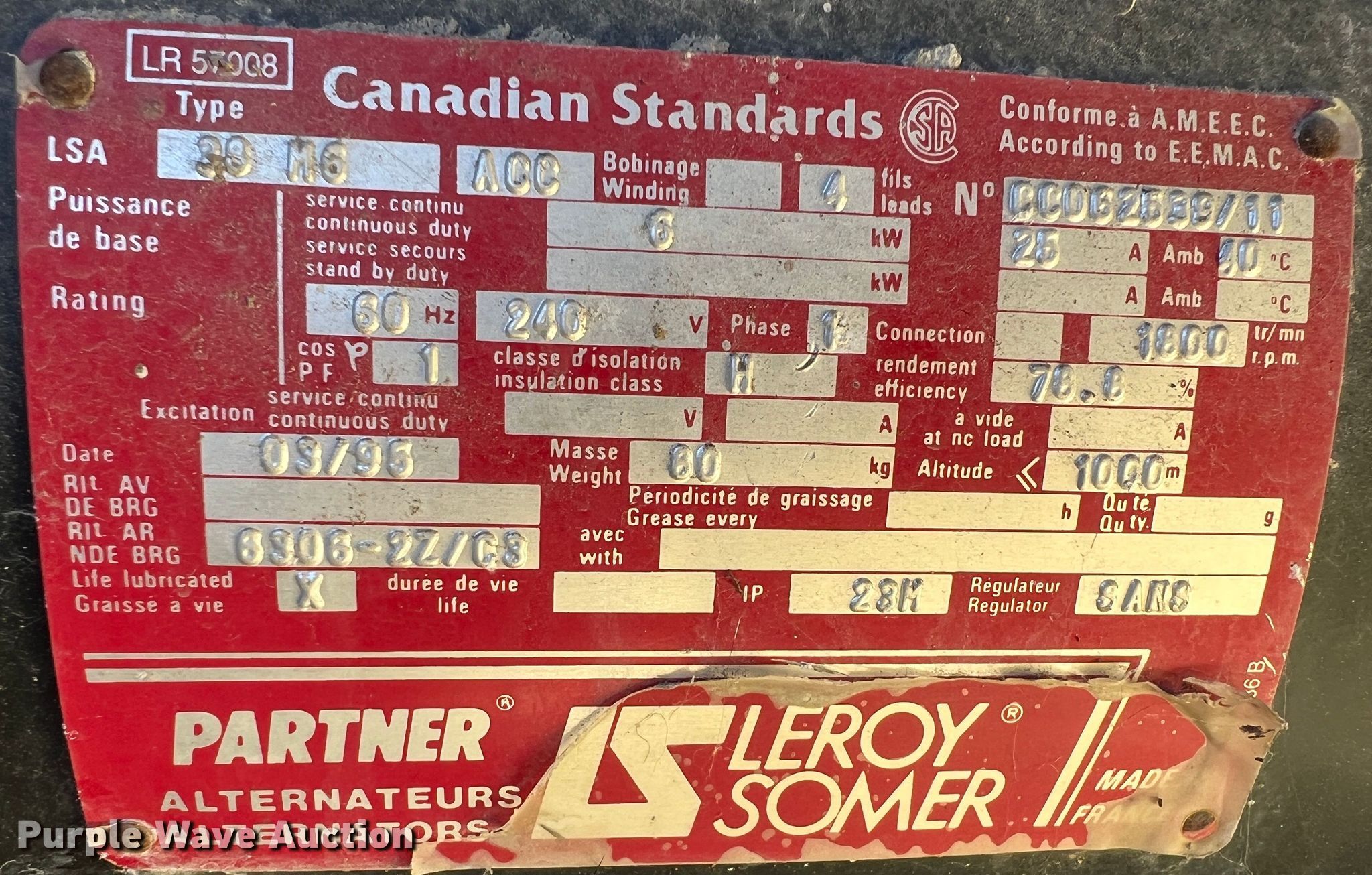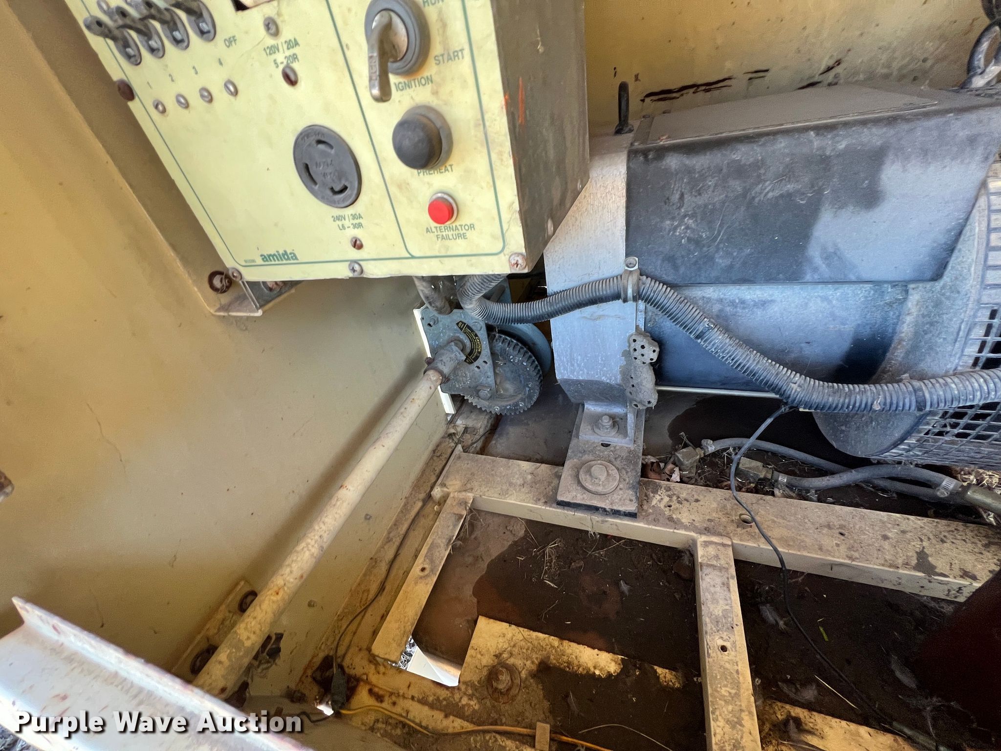 Amida AL4000 light plant. Hours: 564 on meter, Serial: 9601-33845. Engine Cylinders: 3, Fuel type: Diesel. Features Generator Canadian Standards 38 M6, kW: 6, Phase: Single, Electric start, Fuel tank, Light plant Bulbs: 4, Watts: 400, Hoist: Manual. Trailer Axles: Single, Tire size: ST205/75R15. Transfer of ownership documentation will be a bill of sale. SH Striping LLC. 104 Menkicki Dr. Frontenac, KS 66763